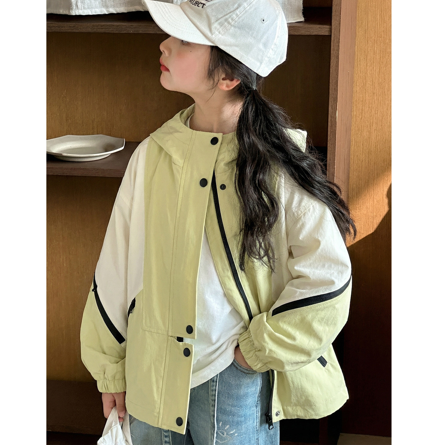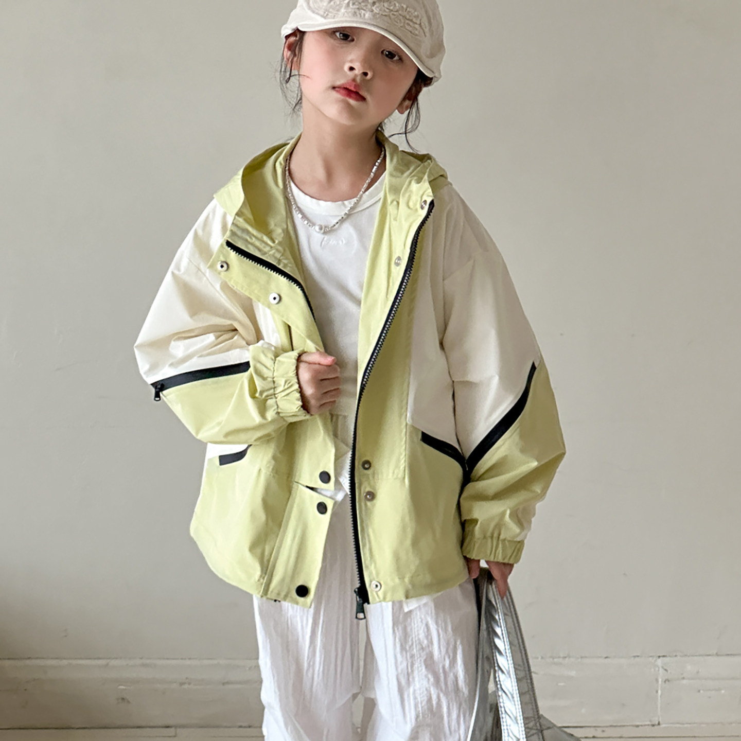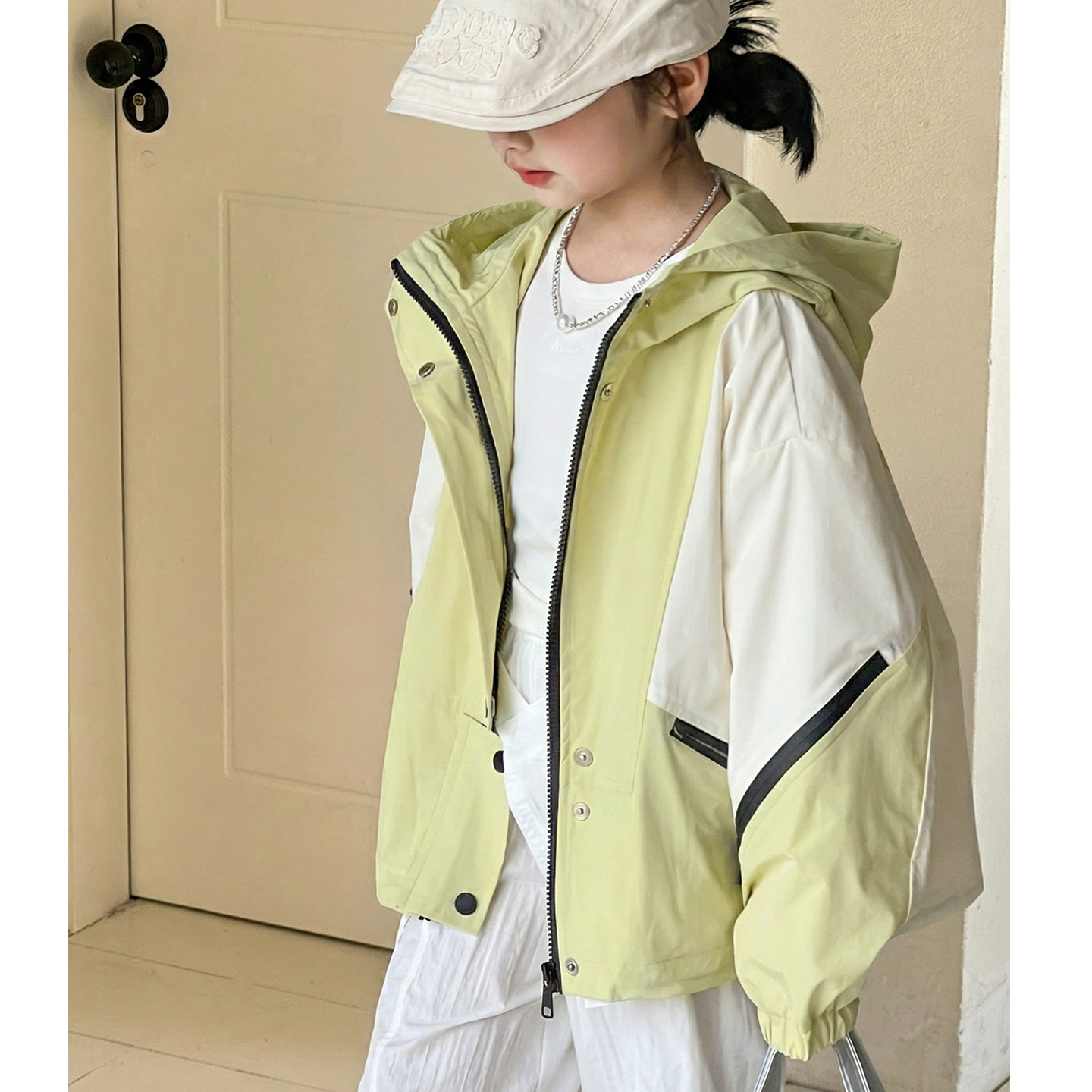 女童外套2026新款春装韩版儿童连帽拼接大童初中生宽松长袖冲锋衣