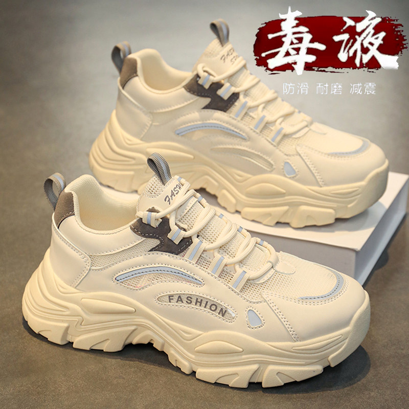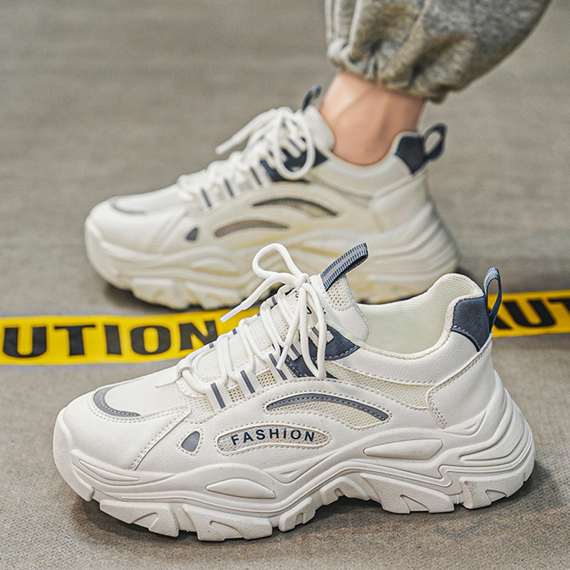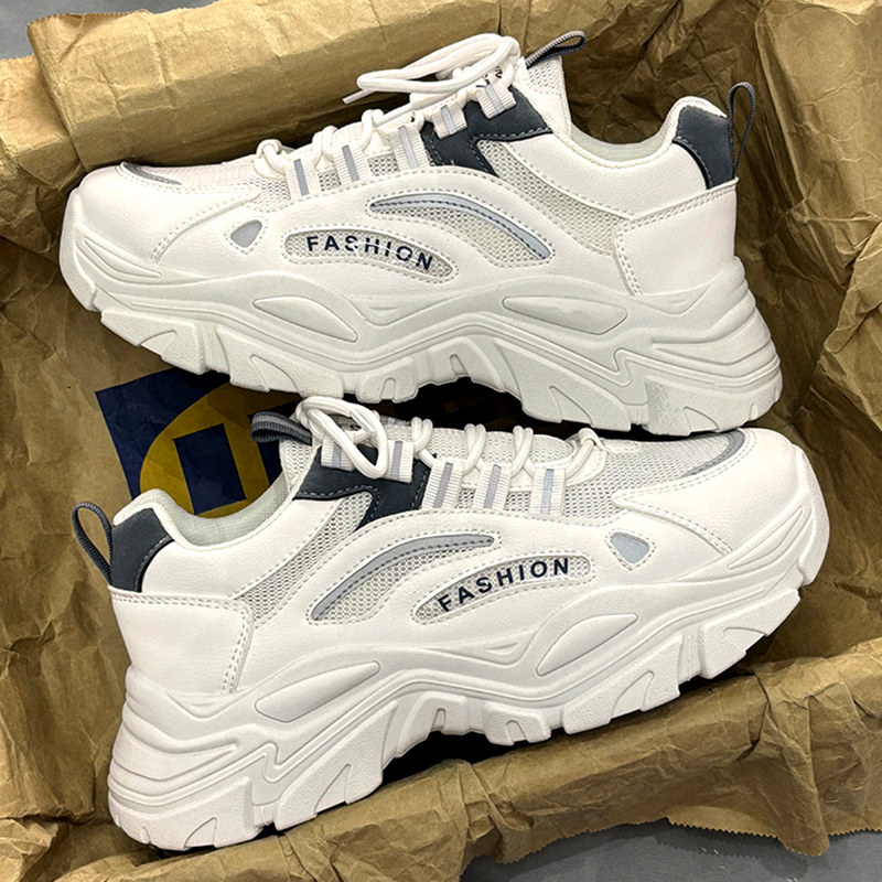 男鞋春夏季青少年网面透气防臭老爹鞋百搭厚底休闲运动鞋白色防滑