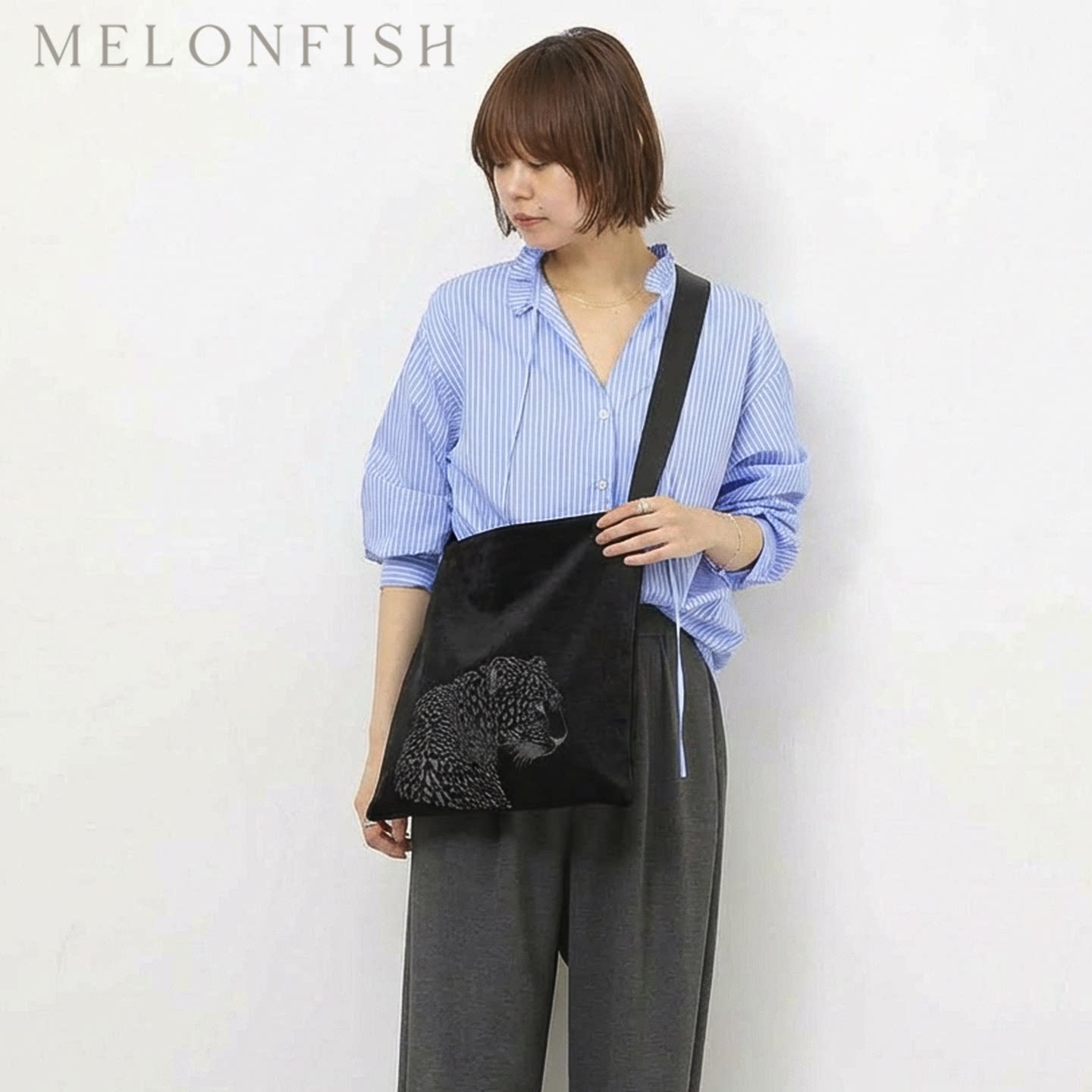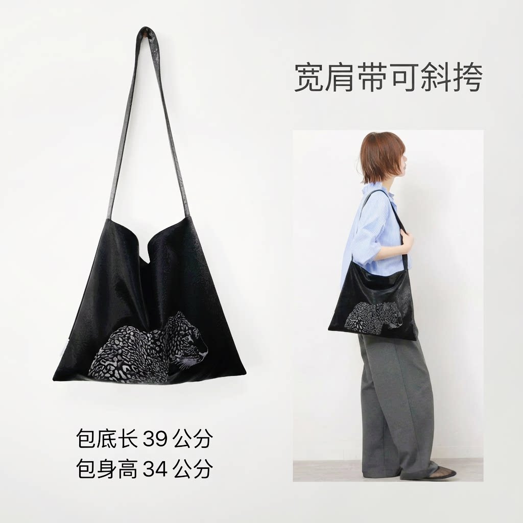 西瓜鱼MELONFISH【猎豹】春季新品原创刺绣单肩黑色斜挎包宽肩带