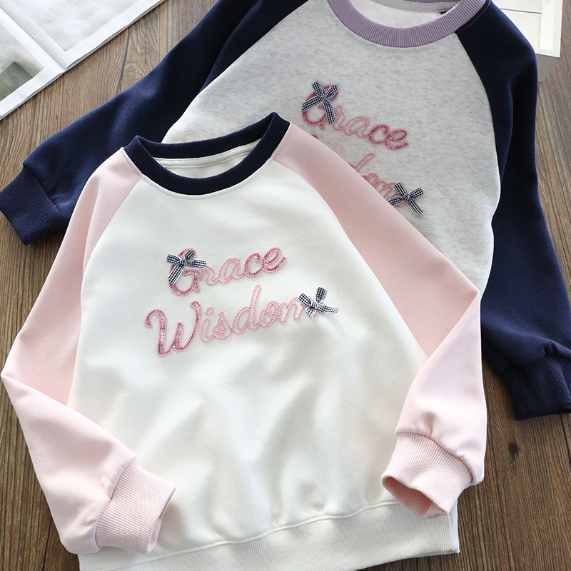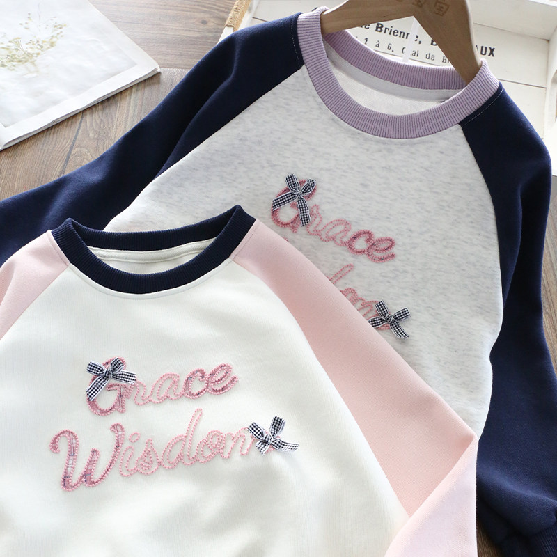 女童春装卫衣2026新款洋气童装儿童撞色袖圆领上衣春秋款百搭潮