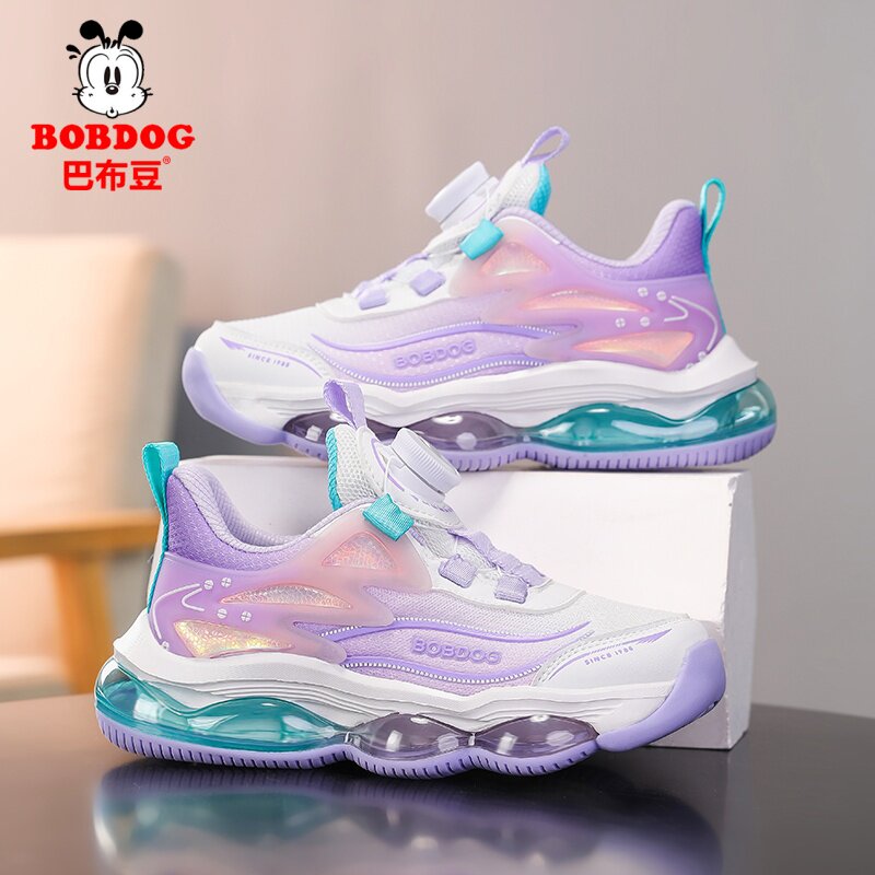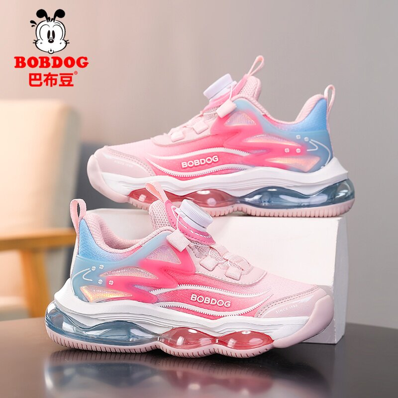 巴布豆男童鞋子儿童跑步鞋春秋款旋转扣透气网布气垫软底运动网鞋