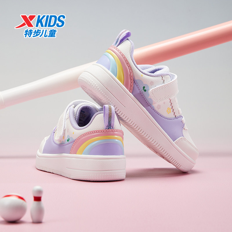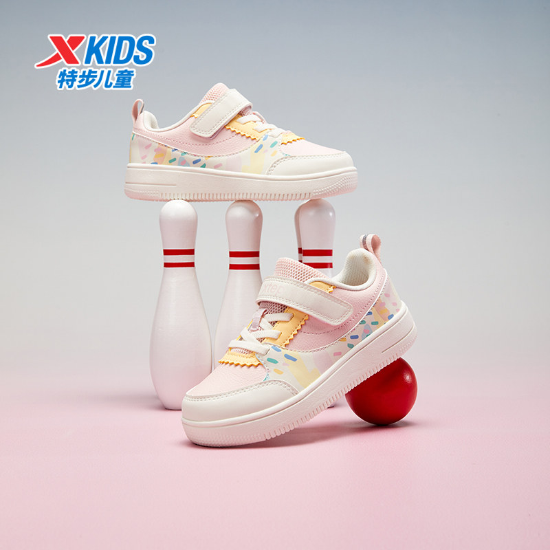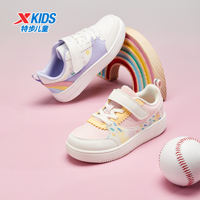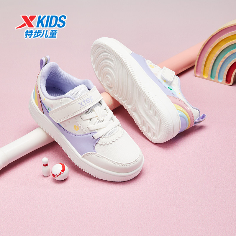 特步童鞋儿童休闲鞋春秋新款小童舒适软底女童魔术贴百搭时尚板鞋