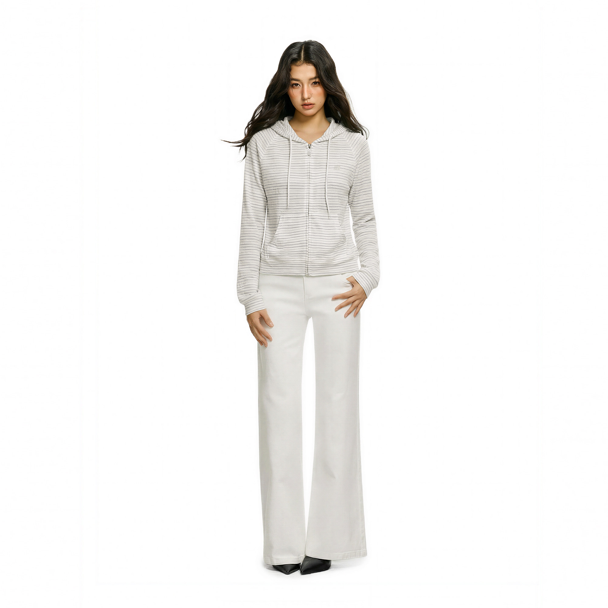 FDR官方店 条纹罩衫连帽卫衣外套女款春季2026年新款拉链开衫上衣