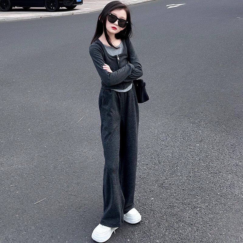 女童春季新款洋气时髦两件套2025女孩春秋童装休闲针织套装中大童