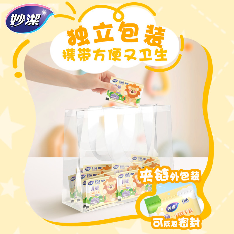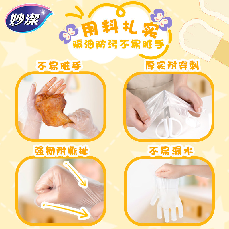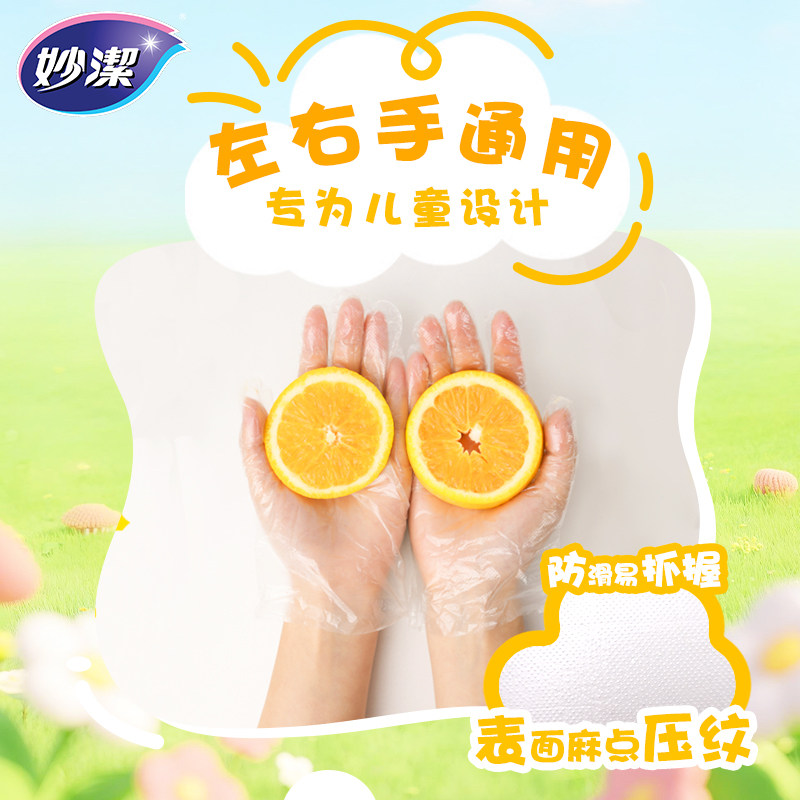 妙洁儿童一次性手套中号食品级专用小孩家用pe加厚耐磨独立包装