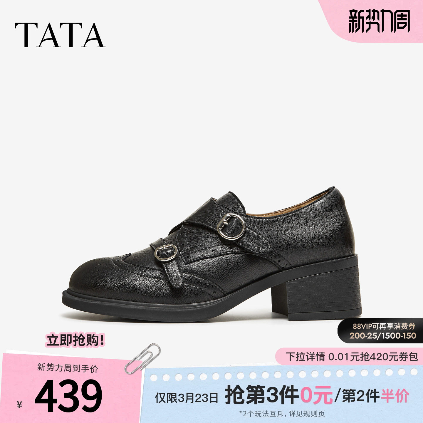 TATA他她布洛克乐福女鞋2026春季小皮鞋休闲百搭豆豆鞋子U2J01AM6
