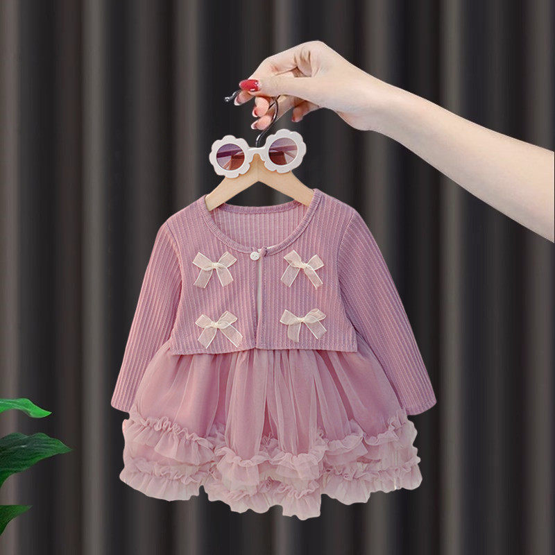 女童连衣裙春装2026新款洋气儿童公主裙开衫周岁宝宝礼服春秋裙子