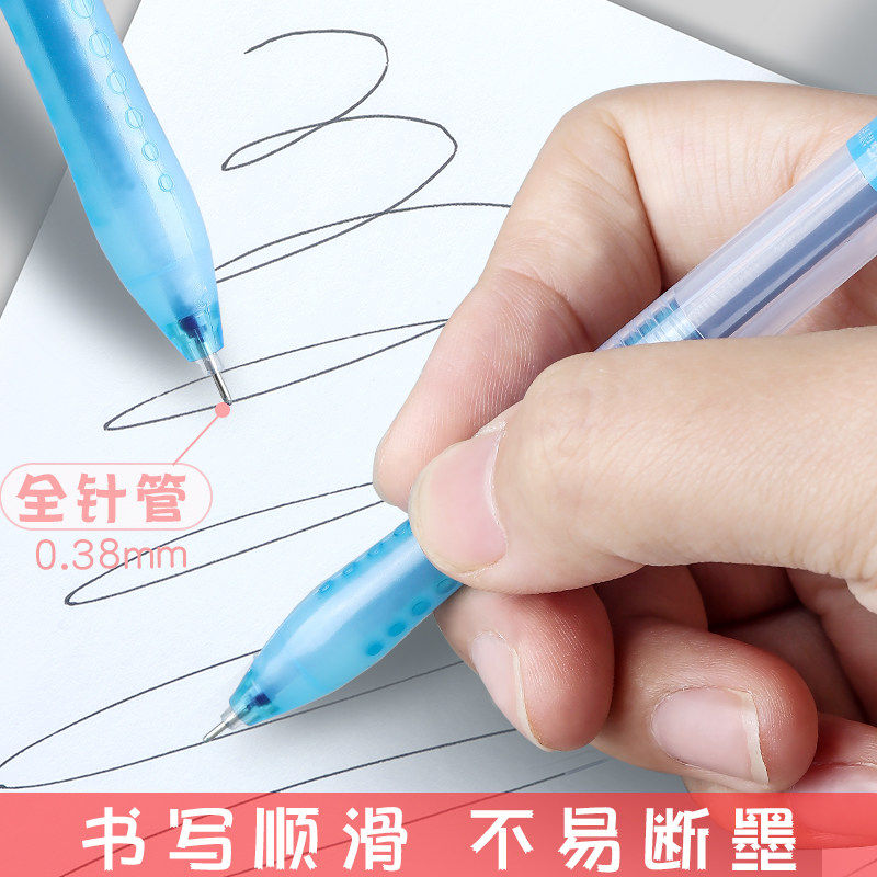 晨光中性笔速干墨水碳素笔全针管头0.38mm极细线幅黑色学生用学习办公商务文具水笔拔帽款考试专用官方旗舰店