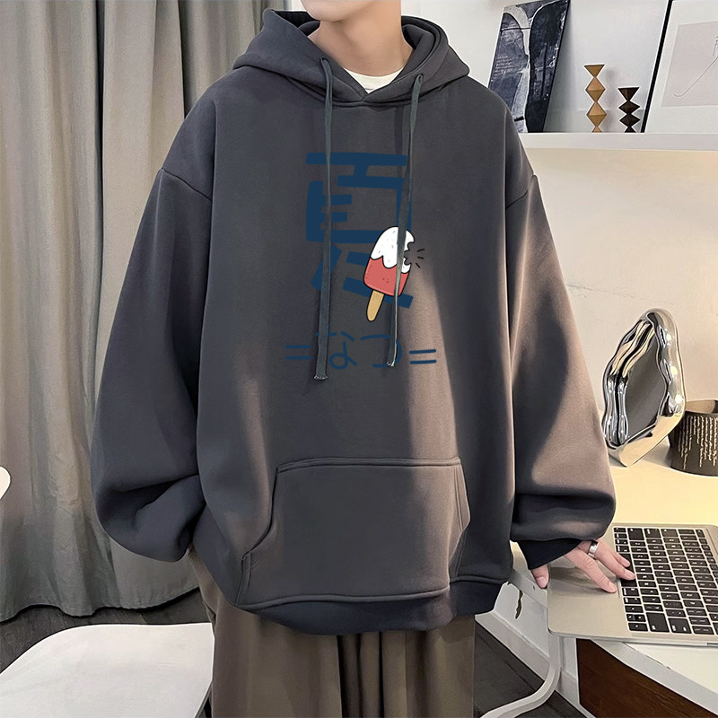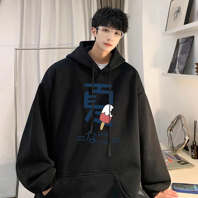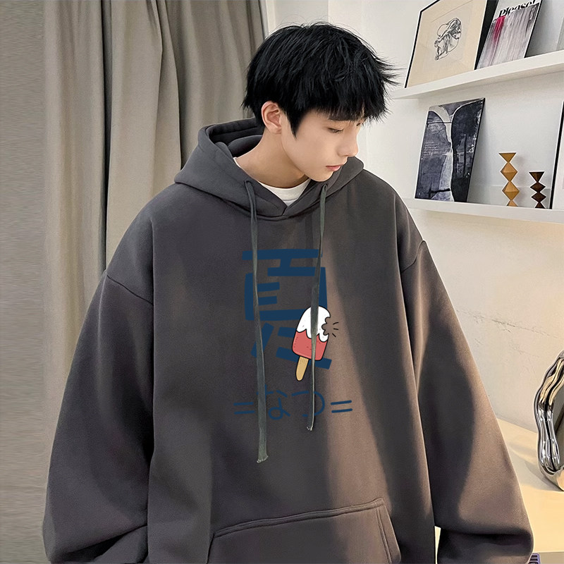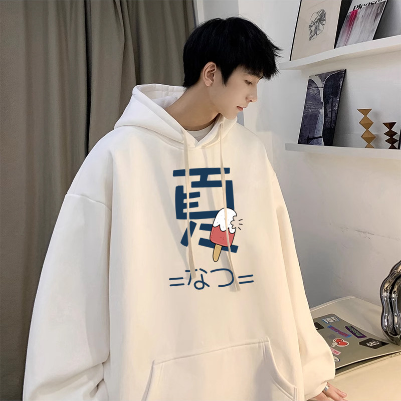 青少年春秋季连帽卫衣外套宽松男初中高中学生白色带帽衫上衣潮流