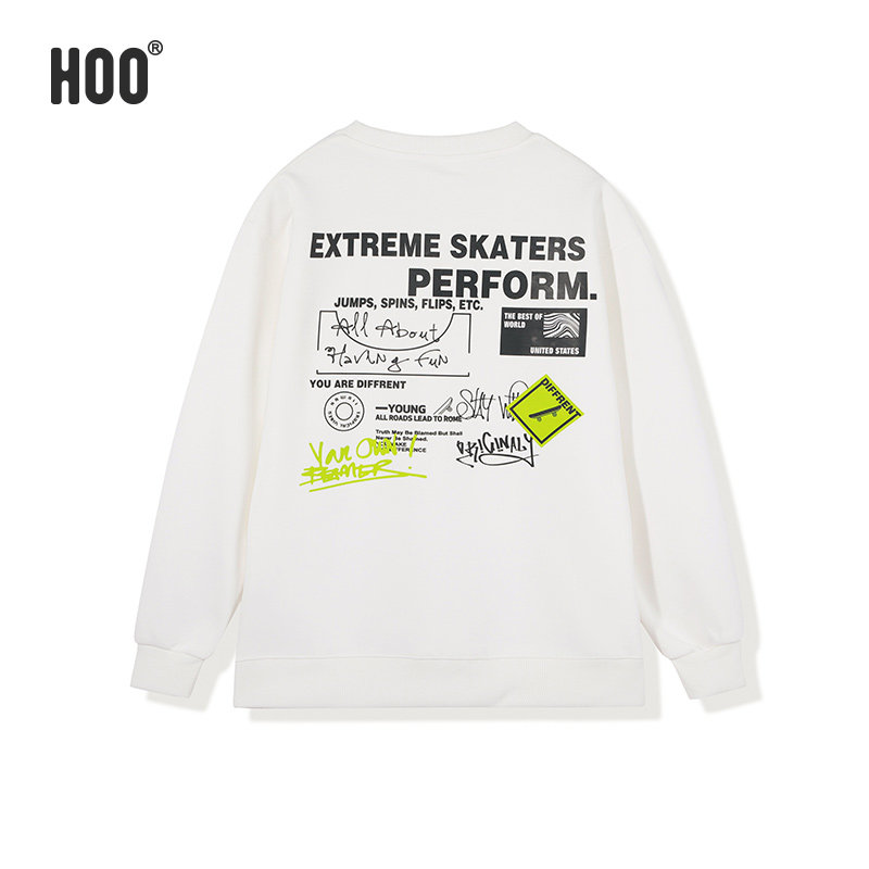 hoo男童卫衣中大童白色上衣2024春装青少年学生打底衫初中生衣服