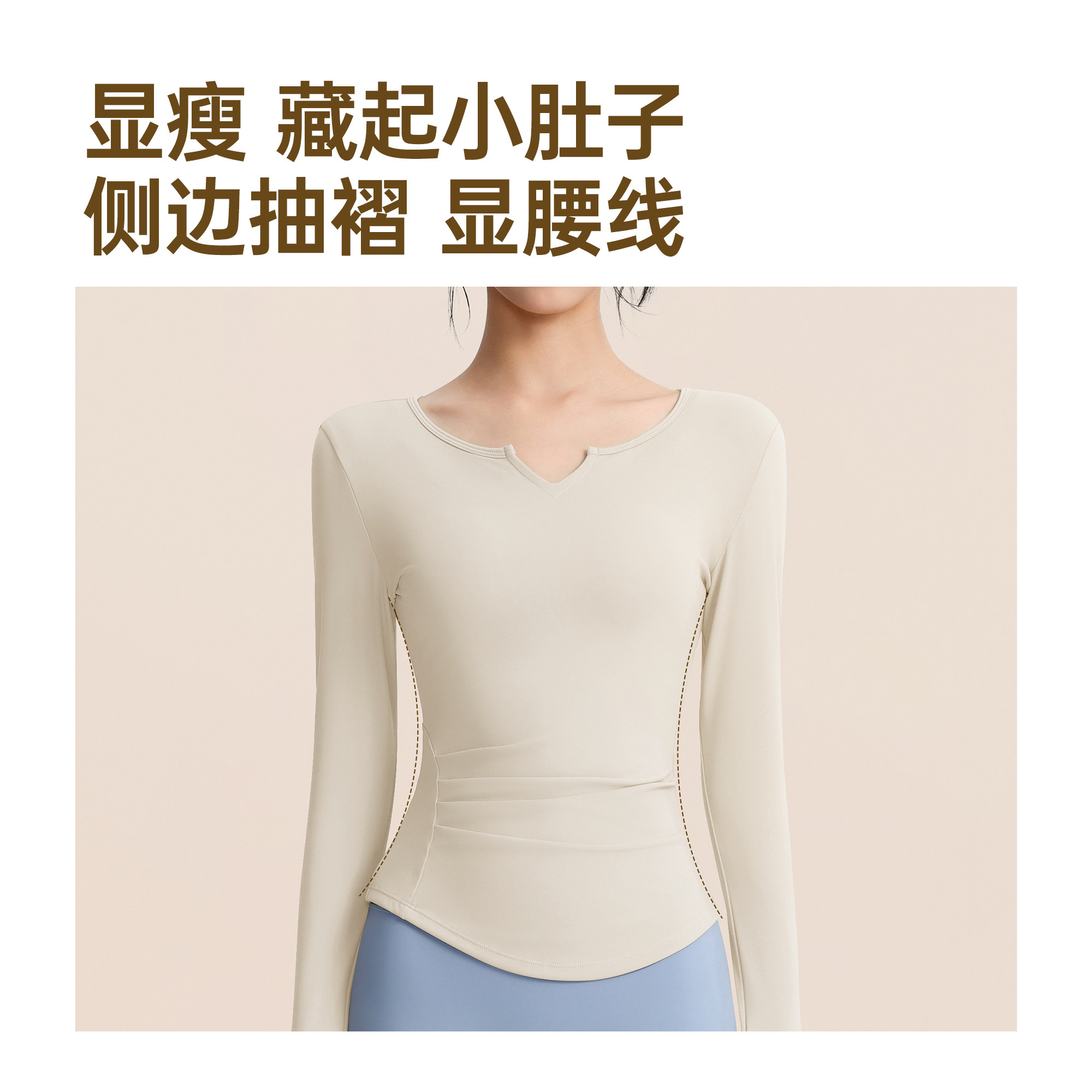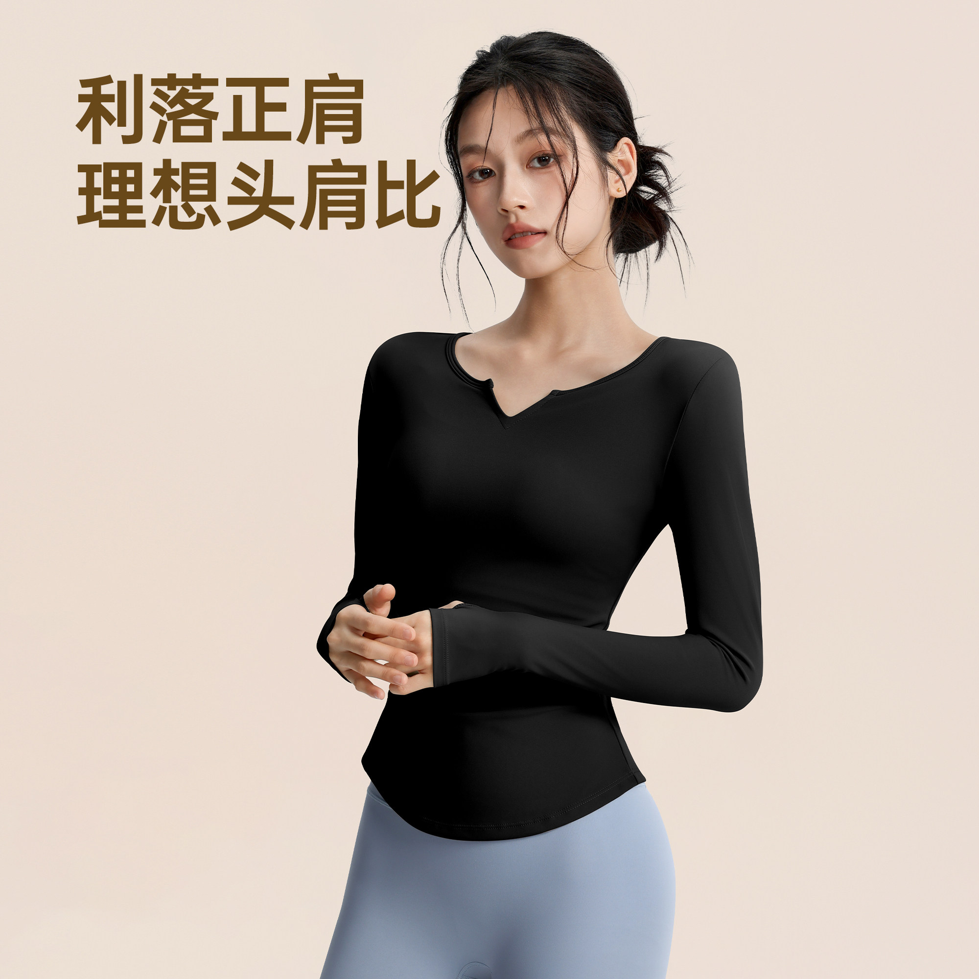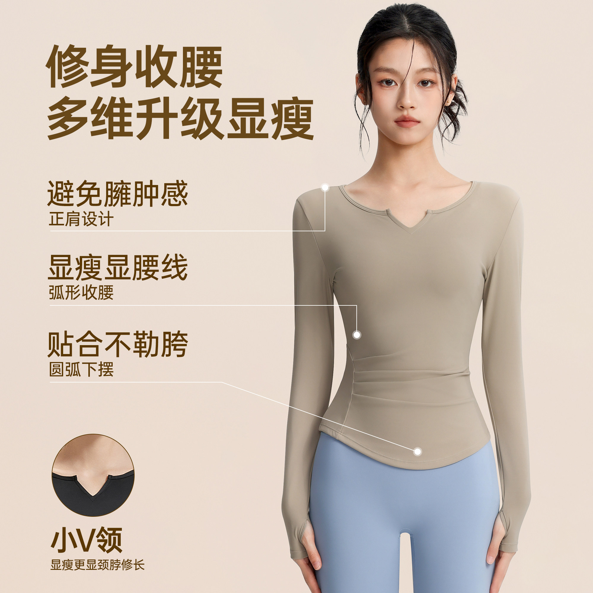 佑美瑜伽服运动健身衣女小蛮腰V领普拉提训练服长袖运动跑步上衣