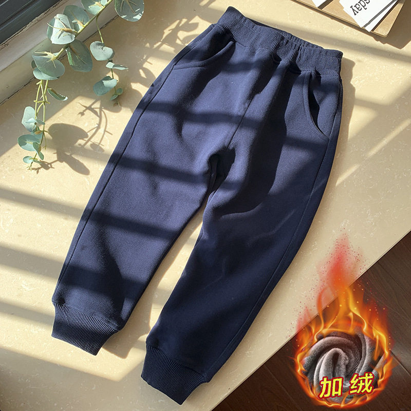 儿童不倒绒加绒裤子冬装新款男童加厚宝宝保暖女童长裤运动裤童裤