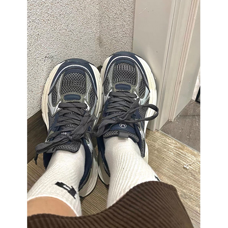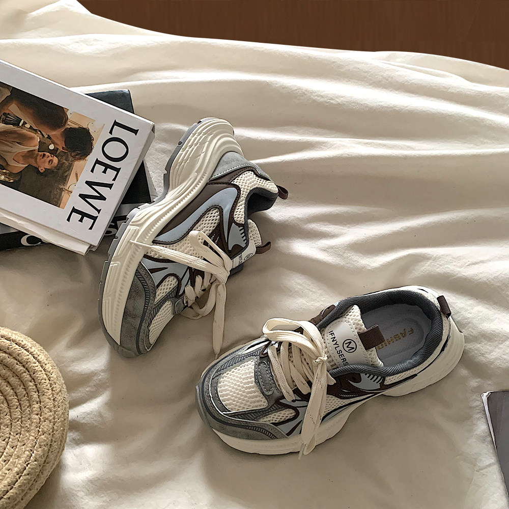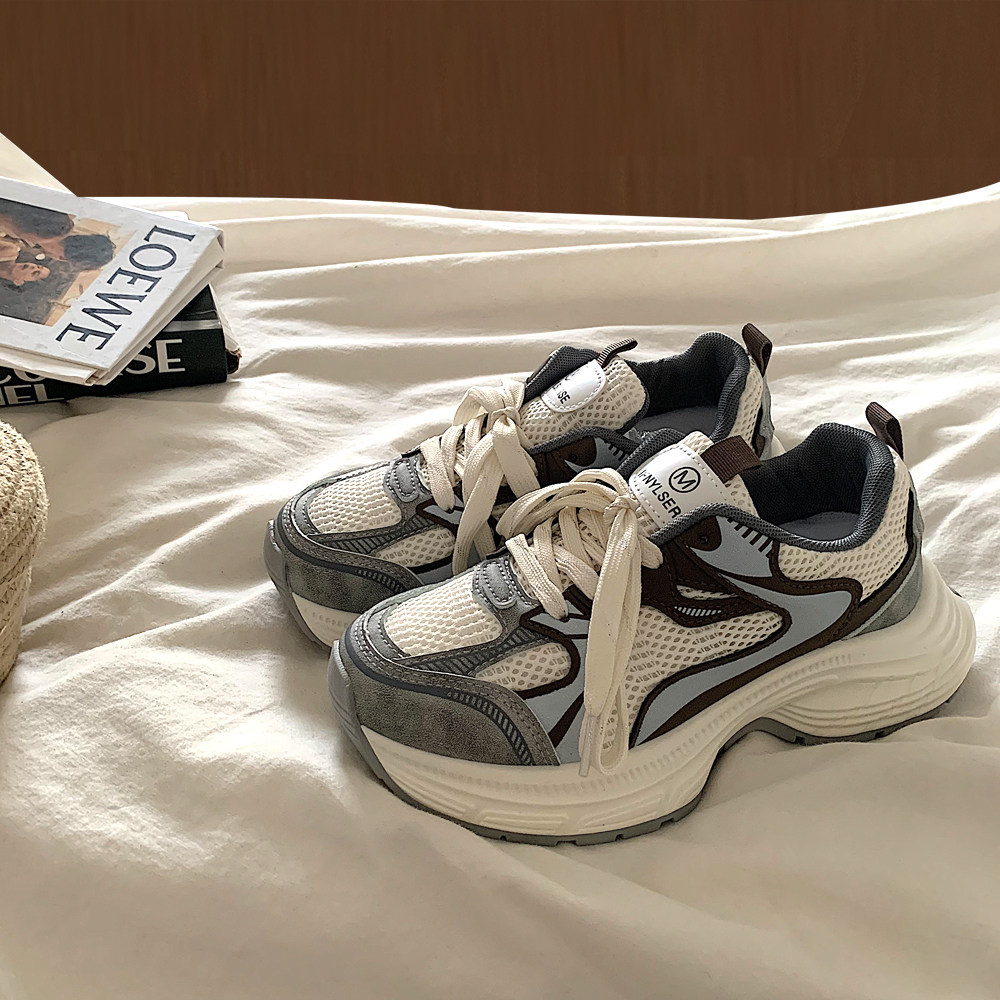 金屿鹿韩版ins复古厚底网面透气运动鞋女夏新款港风轻便休闲跑鞋