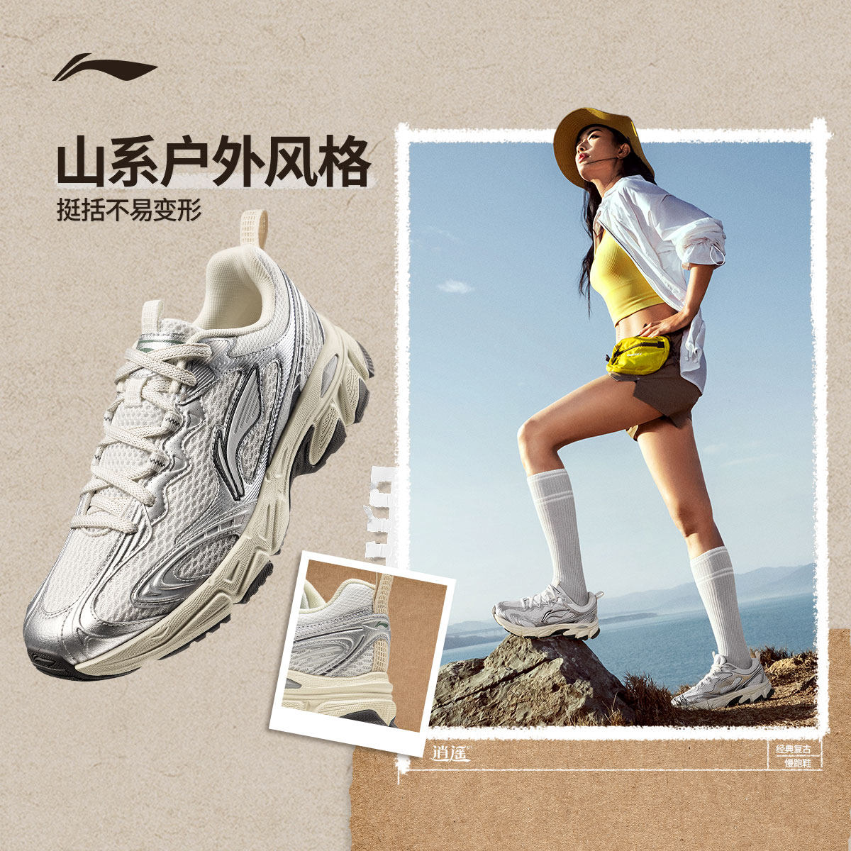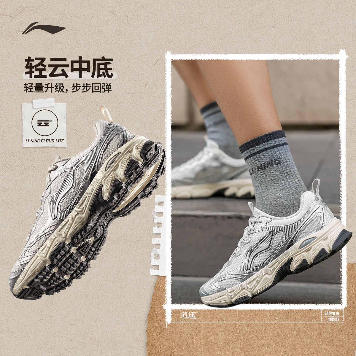 【李佳琦直播间美妆节付定金】李宁逍遥v3 情侣山系经典慢跑鞋