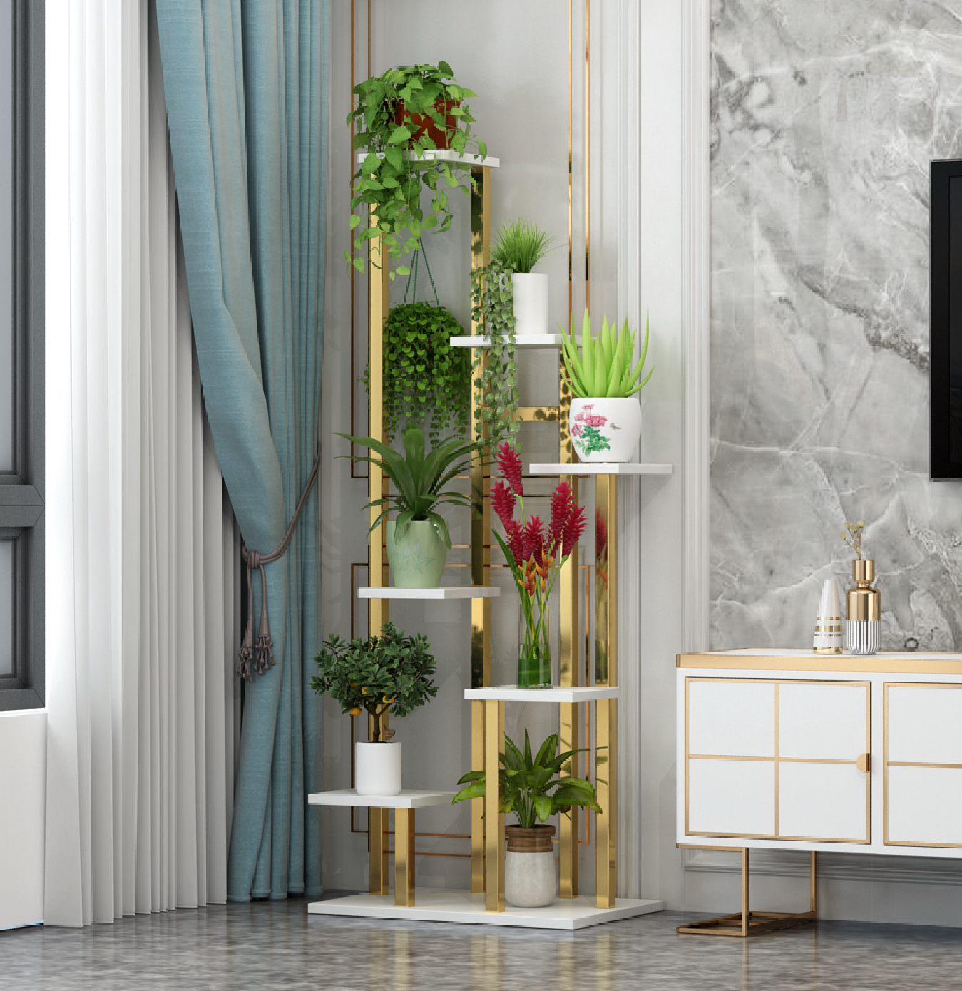 轻奢不锈钢花架置物架简约现代客厅落地式绿萝架多层省空间花盆架