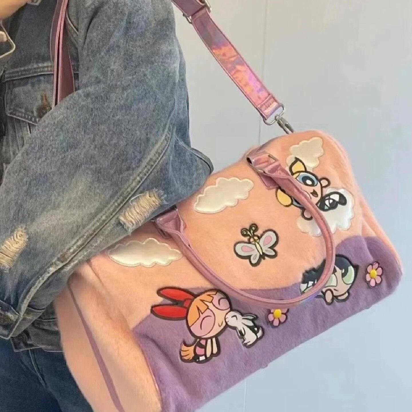 飞天小女警行李包大包大容量斜挎包女士外出包时尚手提包旅行轻便