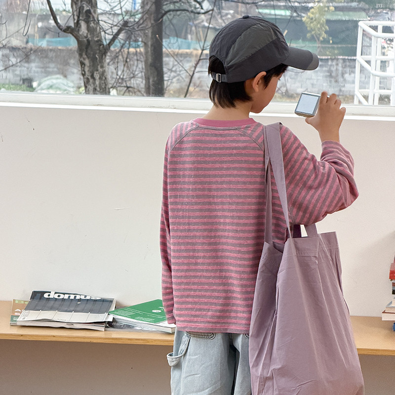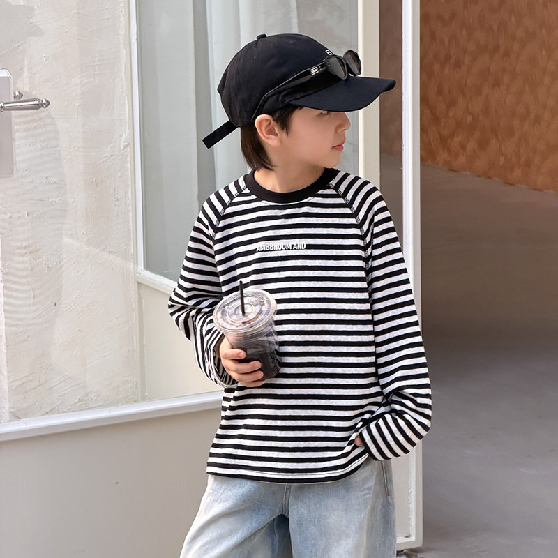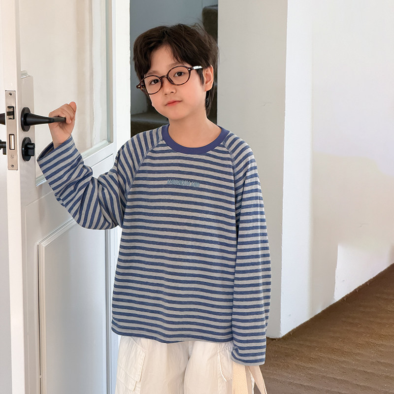男童长袖T恤2026春季新款儿童条纹打底衫薄款男孩休闲春夏上衣潮