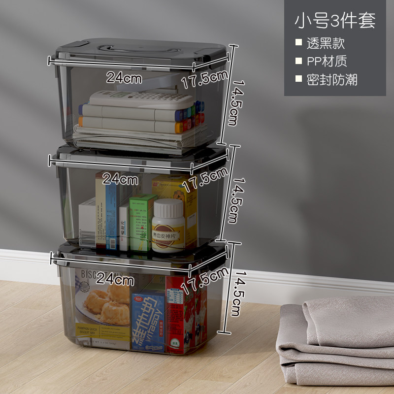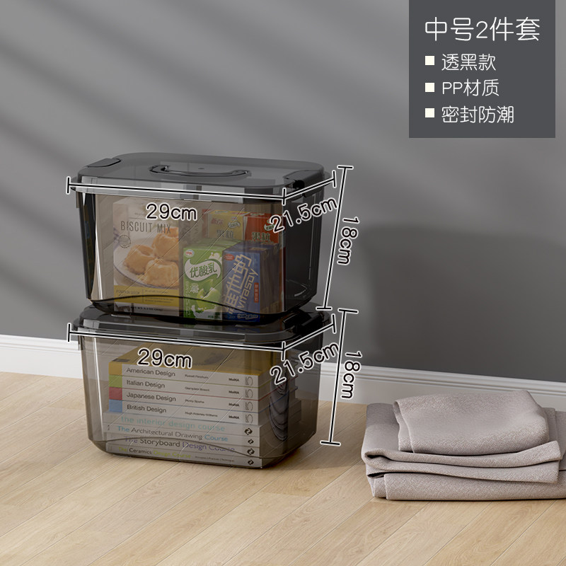 日式透明黑色带盖手提收纳盒家用大小号装衣服玩具被子储物箱胶箱