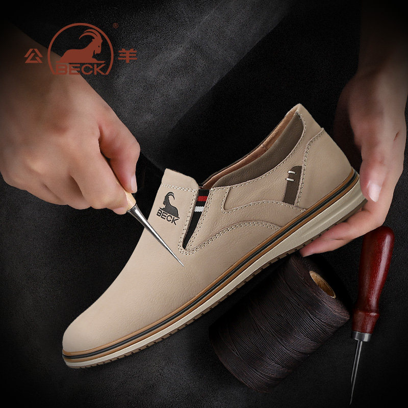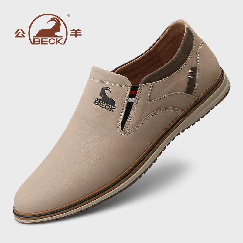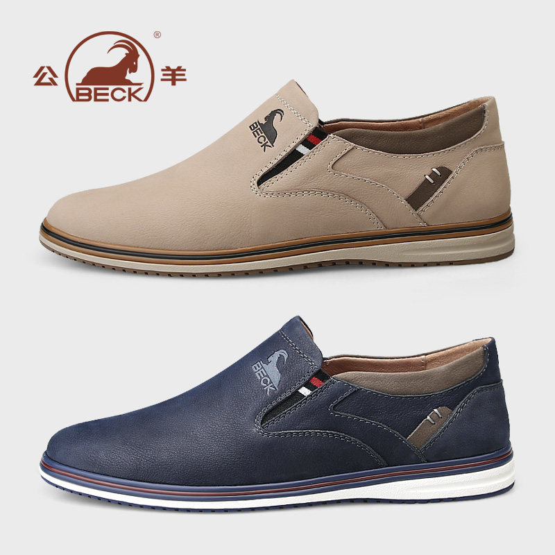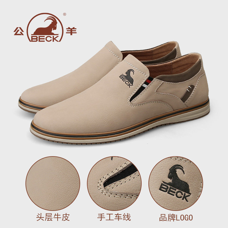 公羊鞋子男鞋2026夏季新款透气真皮一脚蹬男士英伦休闲皮鞋男款