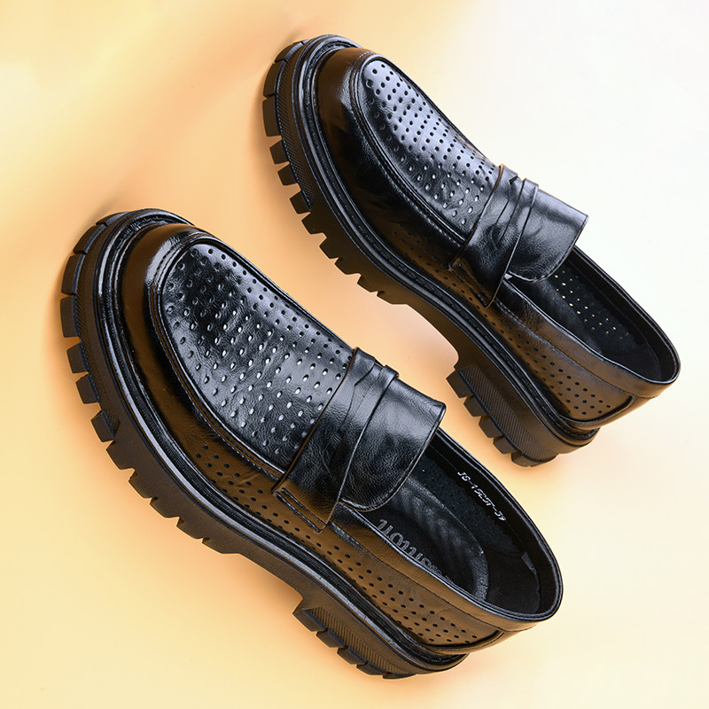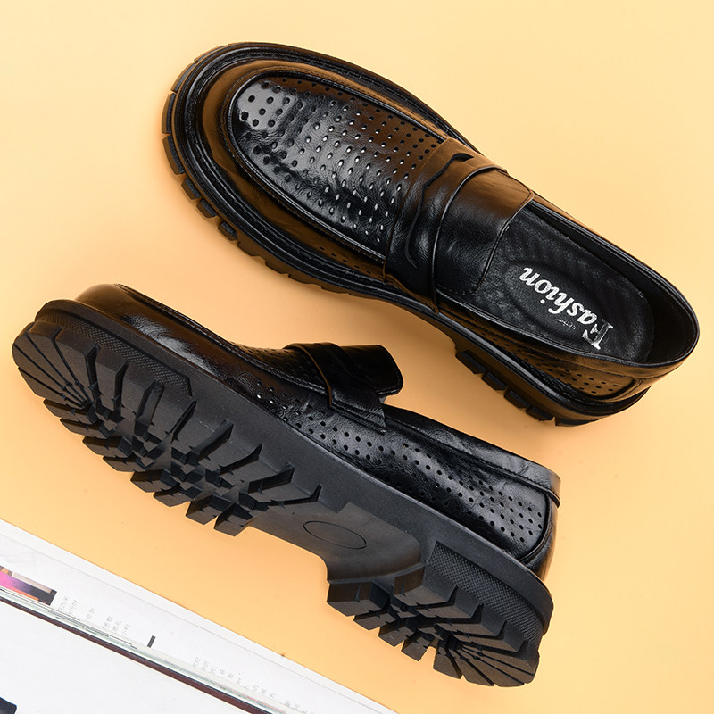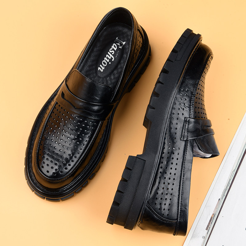 夏季镂空皮鞋男款一脚蹬休闲厚底乐福鞋男打孔男士皮凉鞋2026新款