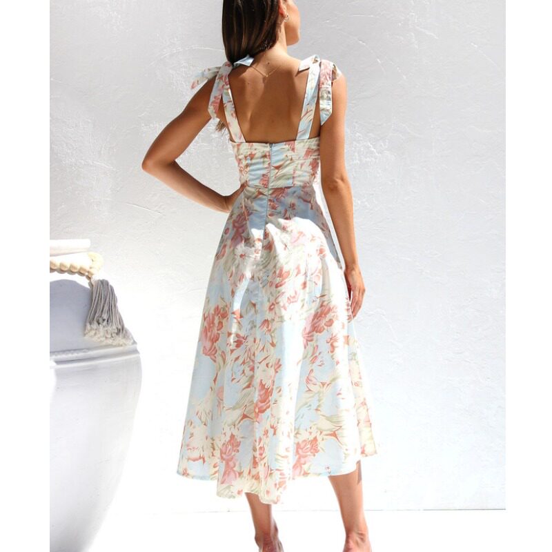 甜美夏季新品小碎花印花修身显瘦收腰A字吊带中长款连衣裙女DRESS