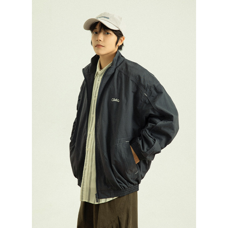 GoodNorth日系复古拉链立领工装外套男女款春秋宽松百搭上衣夹克