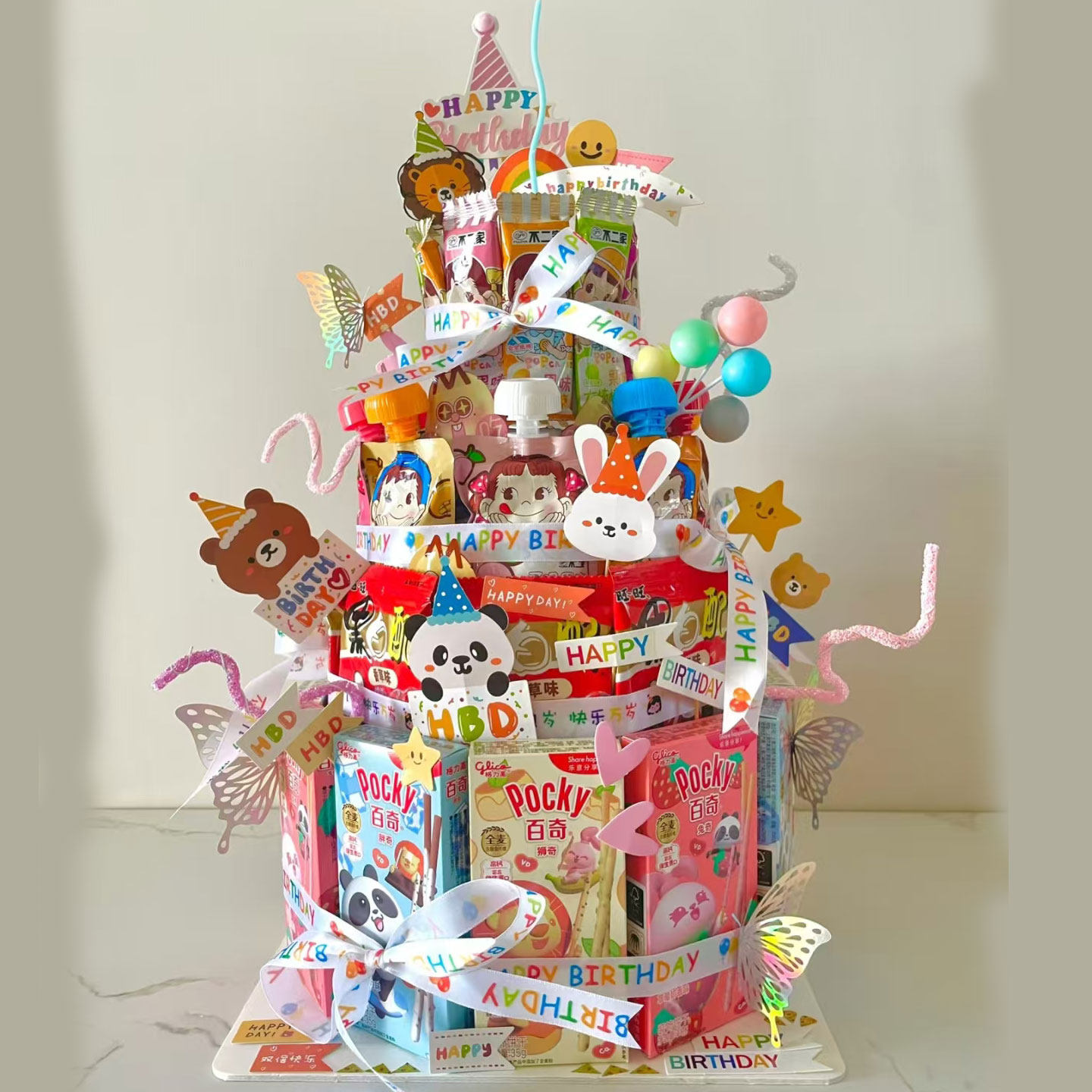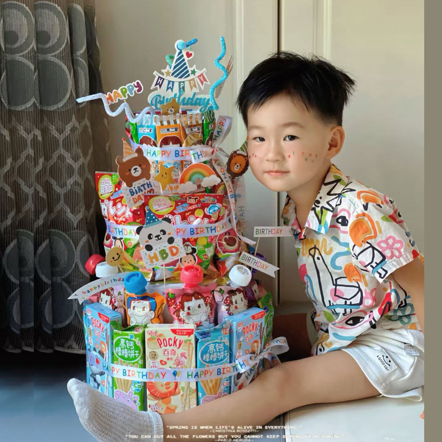 儿童生日零食礼物装饰DIY小朋友男孩女童泡沫蛋糕模型零食大礼包