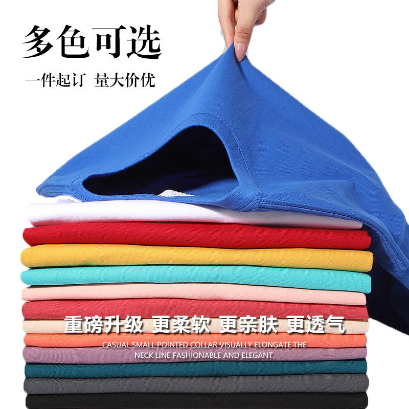 纯棉t恤工作服定制logo印图刺绣重磅圆领短袖班服文化衫印字