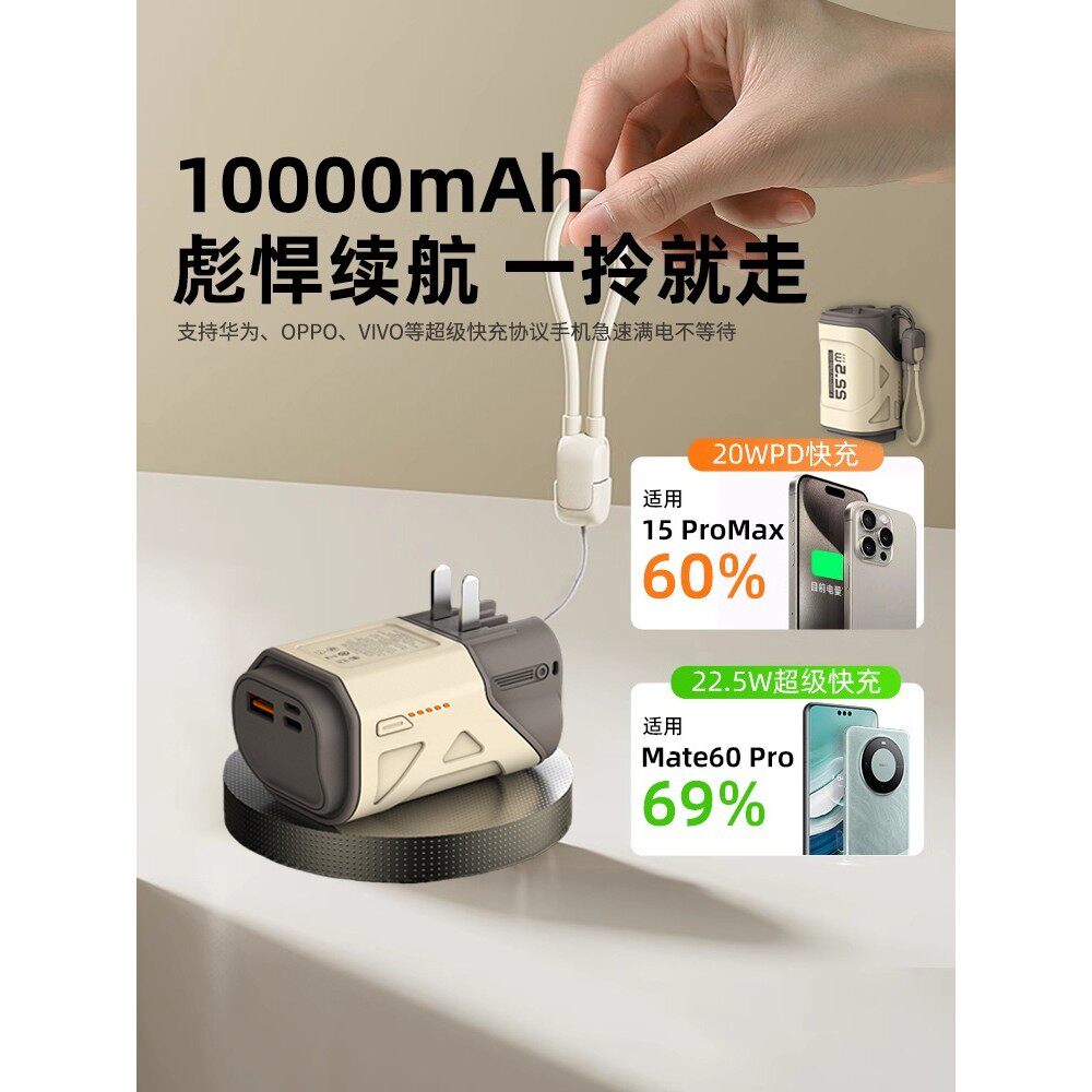 【3C安全认证】充电宝自带ac插头充电器座线二三合一体式大容量快充可以能携带上飞机高铁火车的专用迷你小巧
