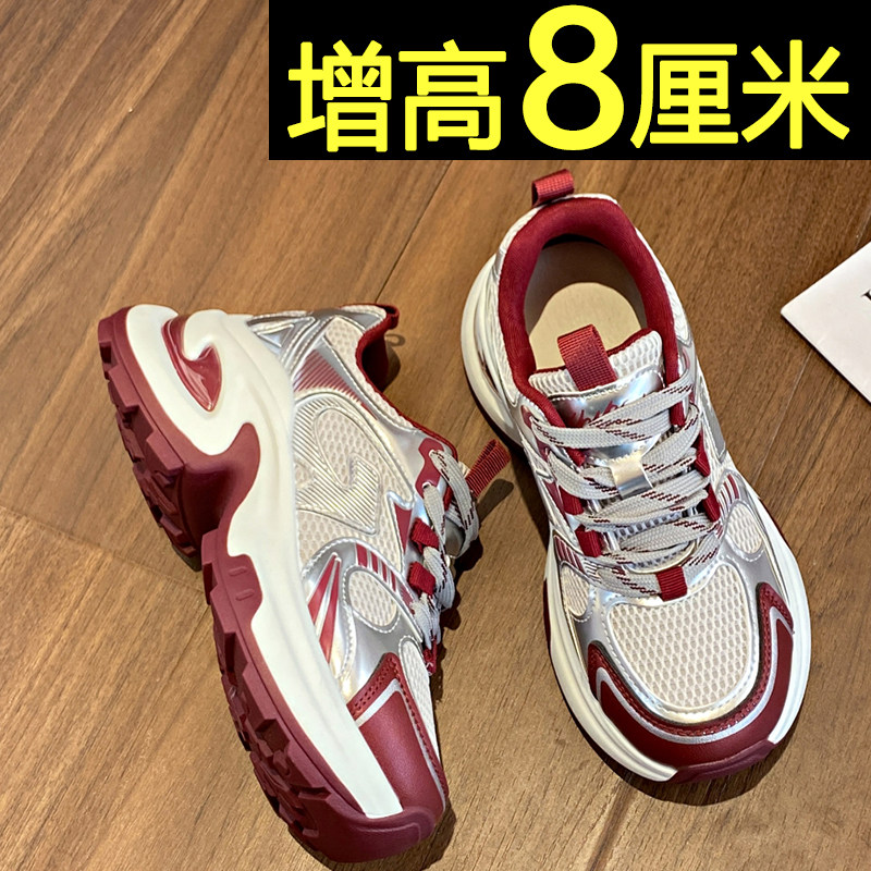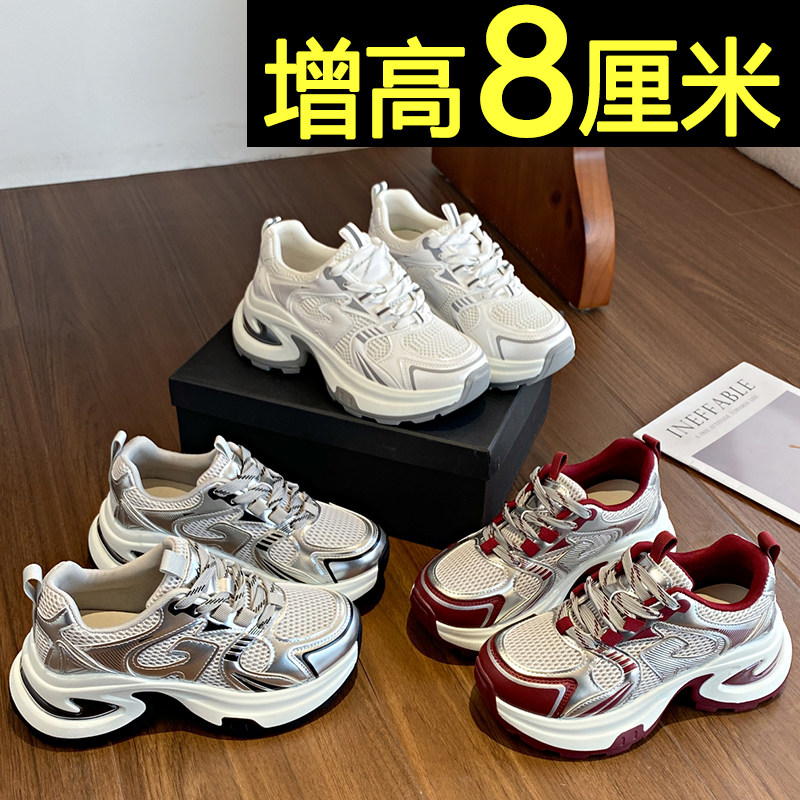 内增高银色老爹鞋女款2026新款爆款秋季厚底运动鞋百搭休闲小白鞋