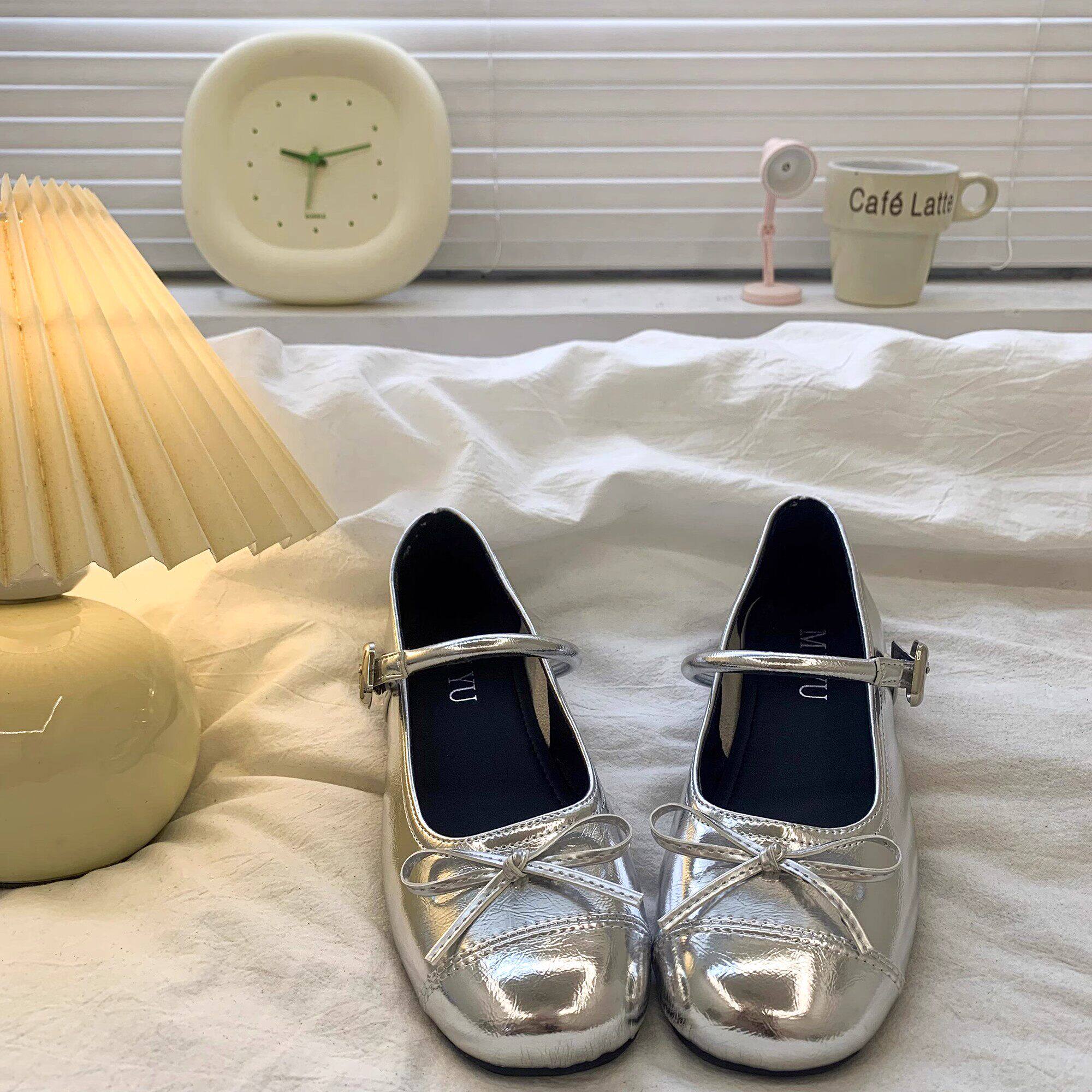 真皮女童皮鞋春秋新款法式浅口小女孩银色单鞋软底玛丽珍公主鞋子