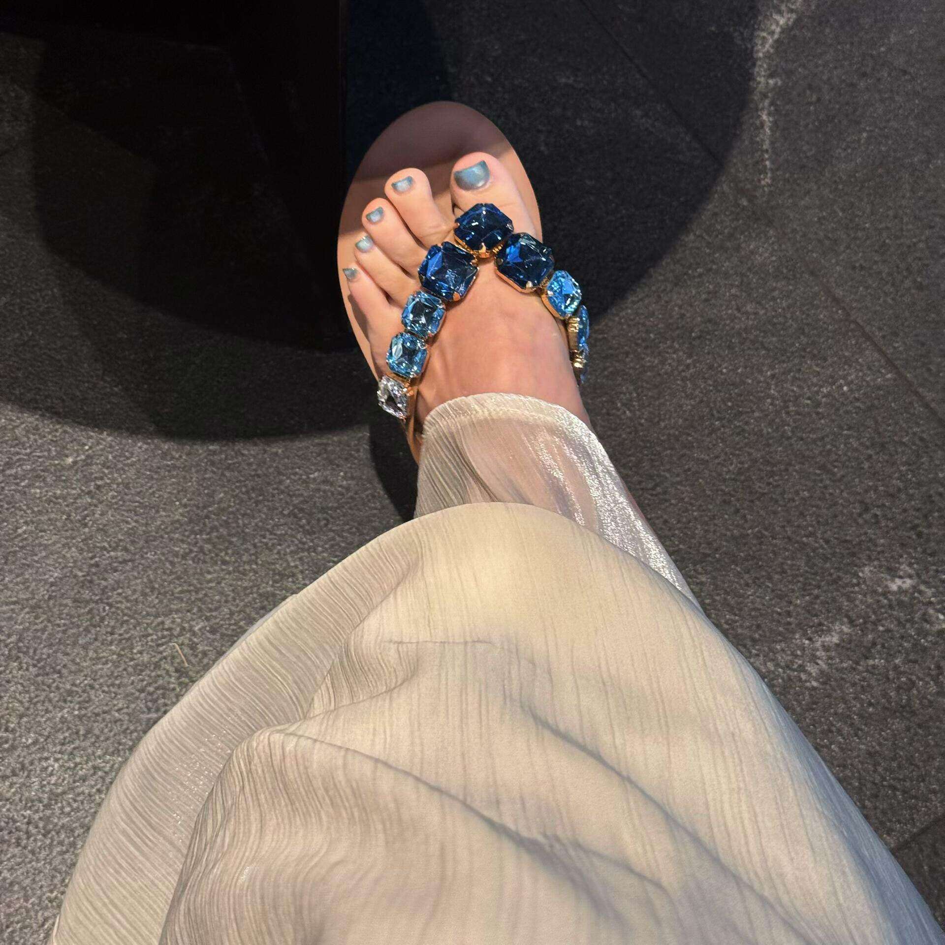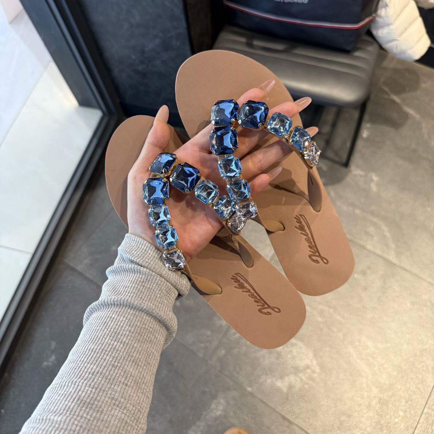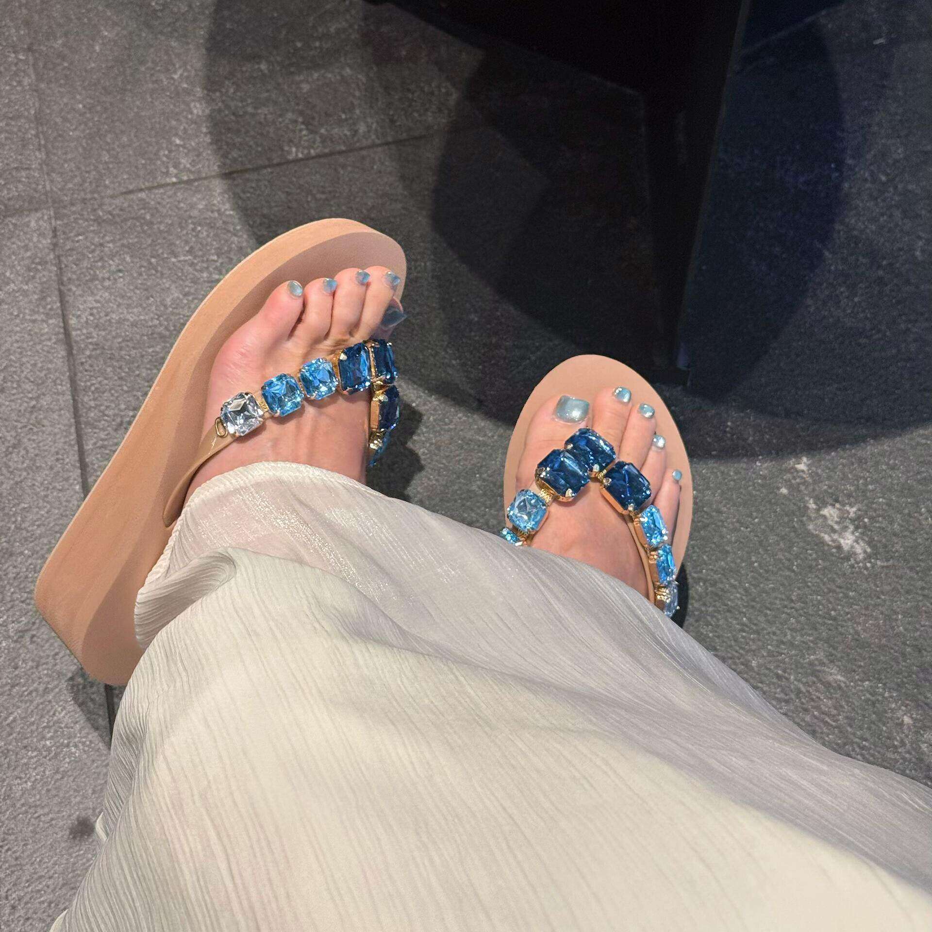 绝美水钻厚底拖鞋女夏季外穿新款时尚海边沙滩度假防滑增高人字拖