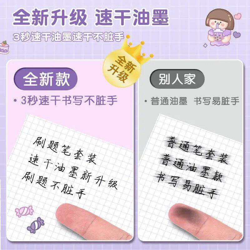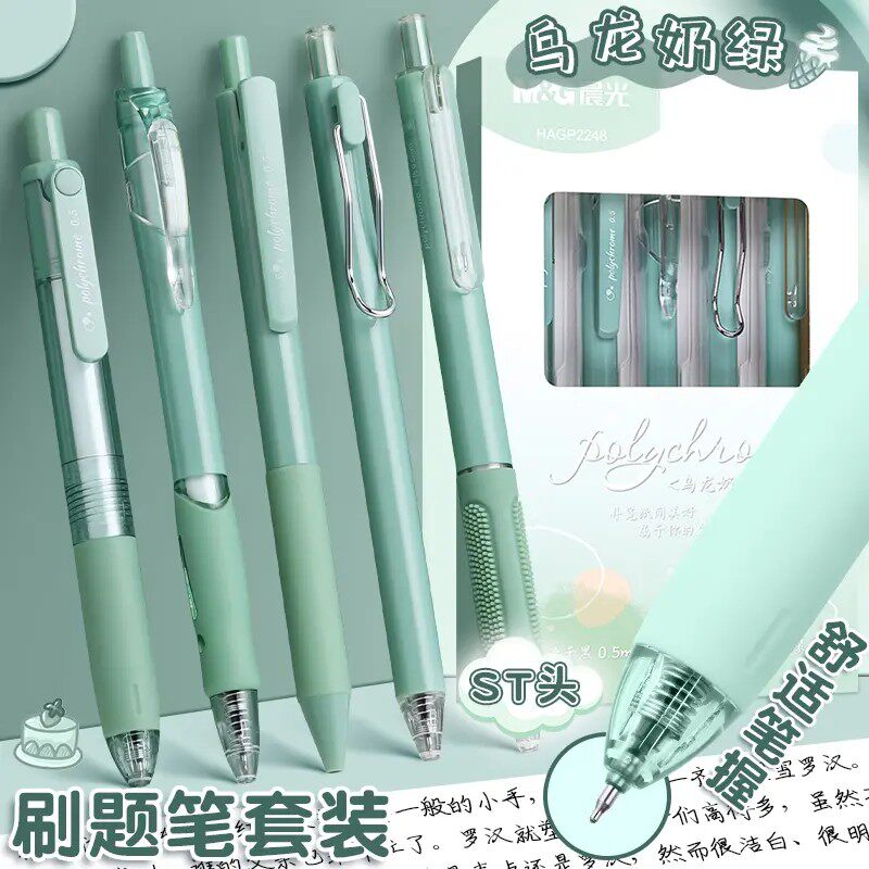 晨光高颜值礼盒装ST中性笔考试刷题专用速干按动奶茶限定学生0.5笔芯黑色签字水笔ins日系可爱女生款文具批发