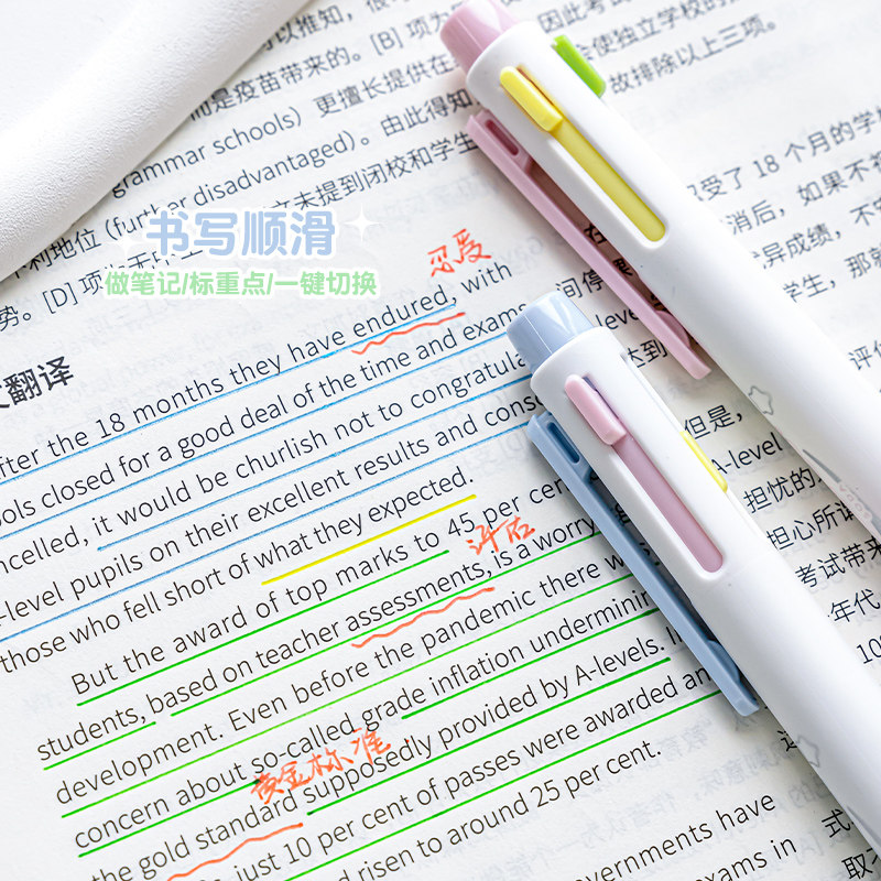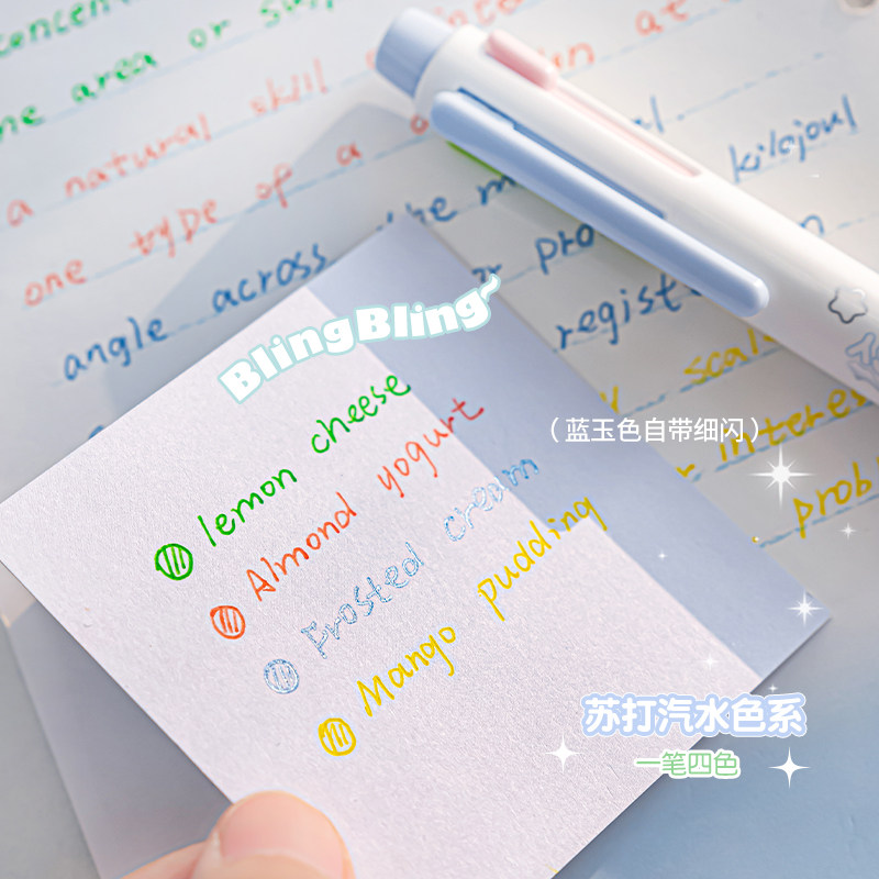 RosyPosy四色中性笔晨光联名彩色圆珠笔女生款高颜值ins风按动笔速干顺滑学生做笔记专用文具软握刷题手账笔