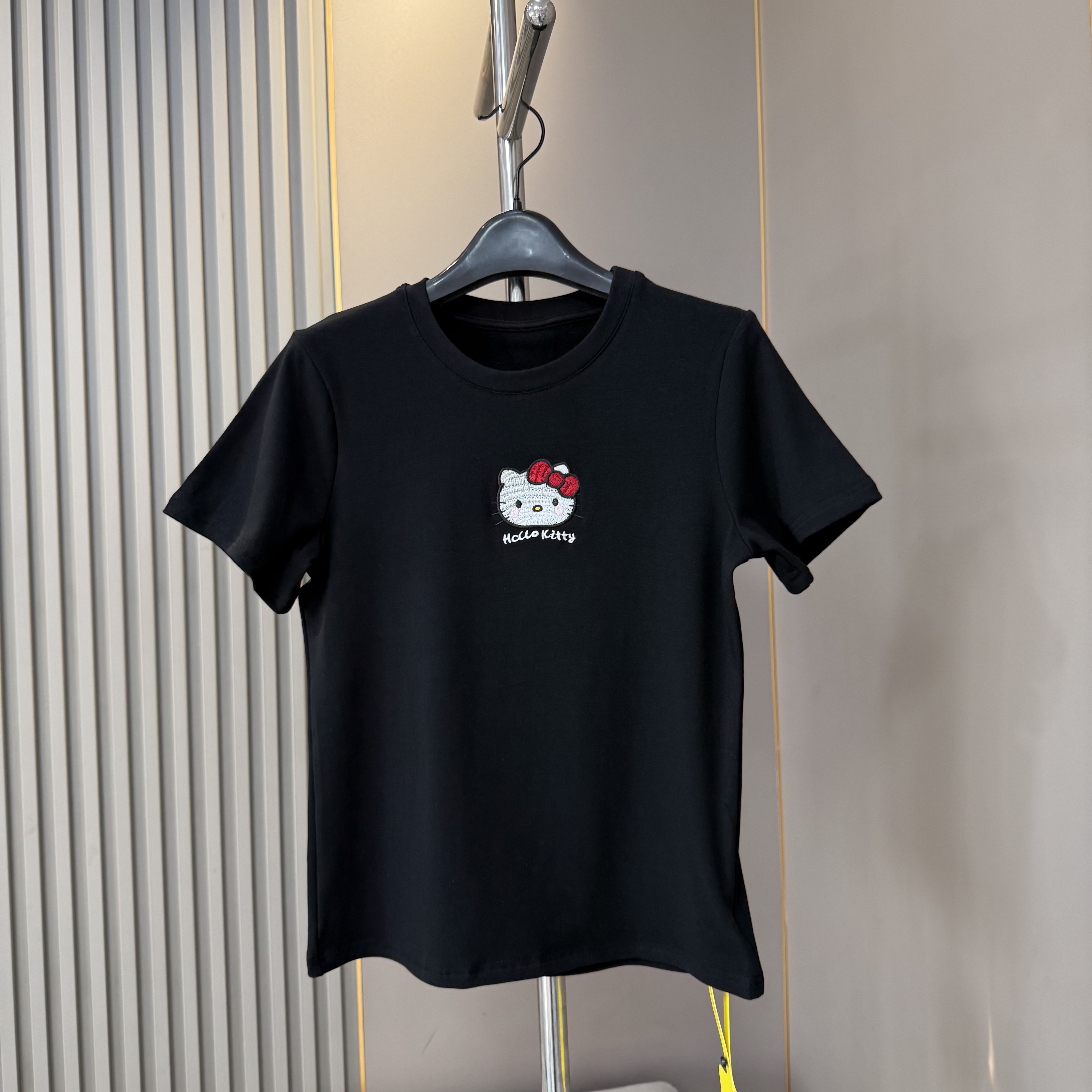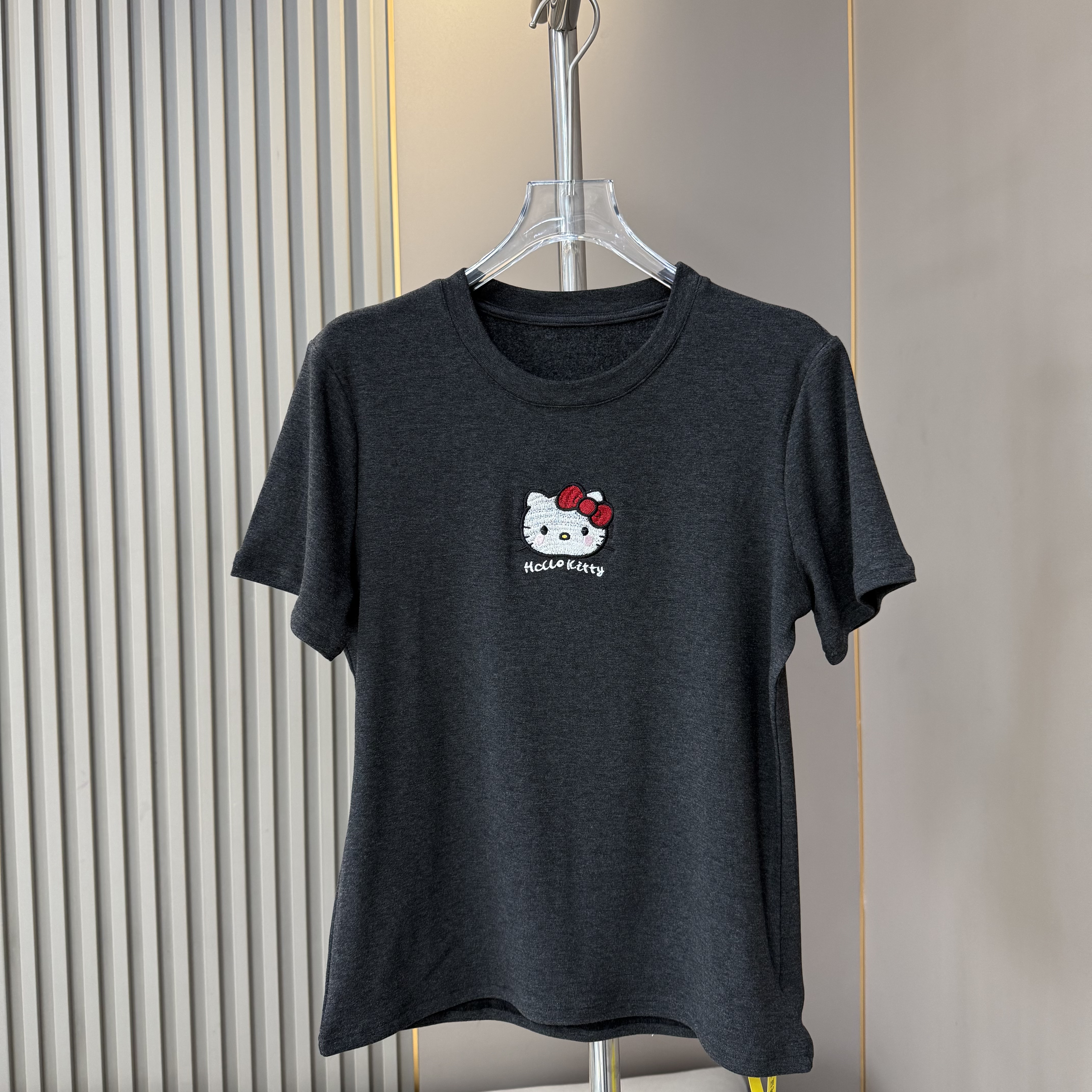 福利 2026早春新款圆领刺绣Kitty薄绒磨毛短袖T恤女猫咪半袖上衣