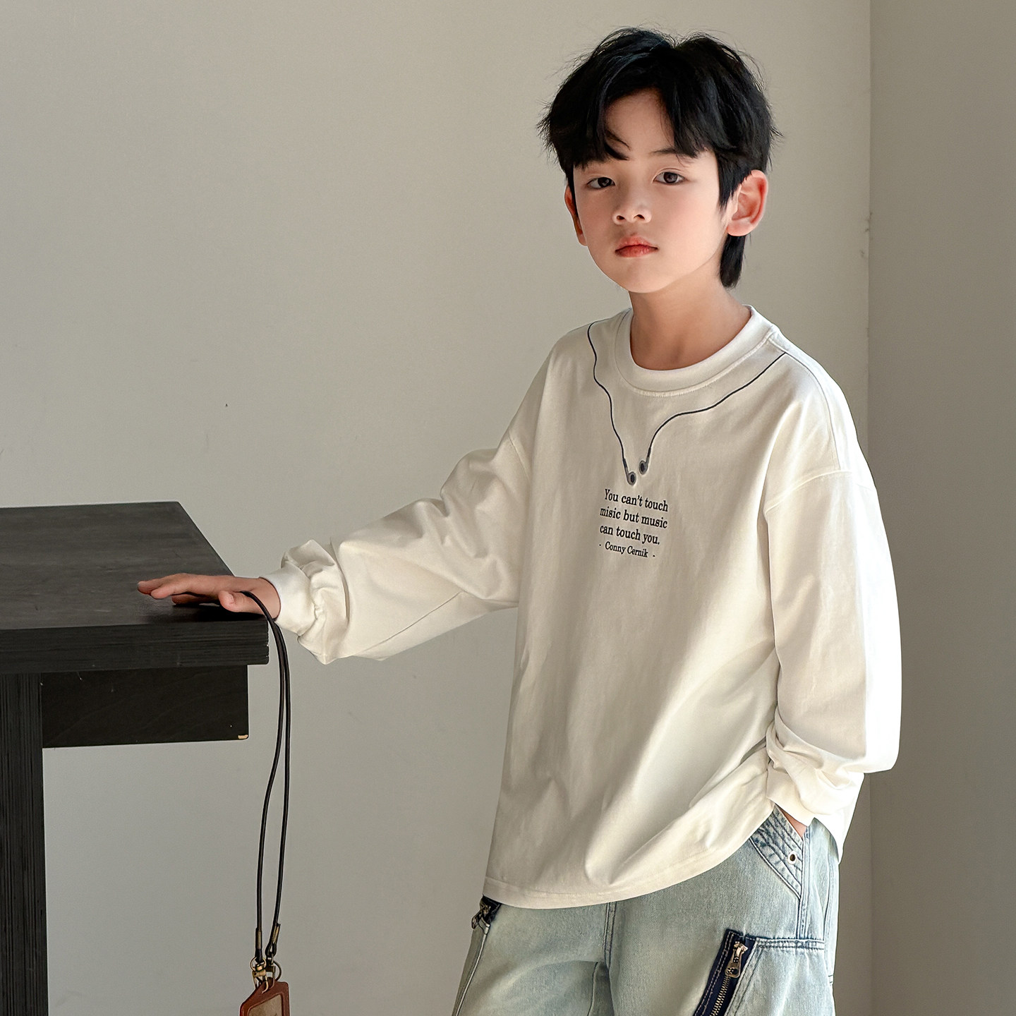 男童长袖t恤春秋款2026新款中大儿童装痞帅打底上衣男孩春装卫衣T