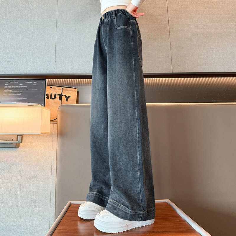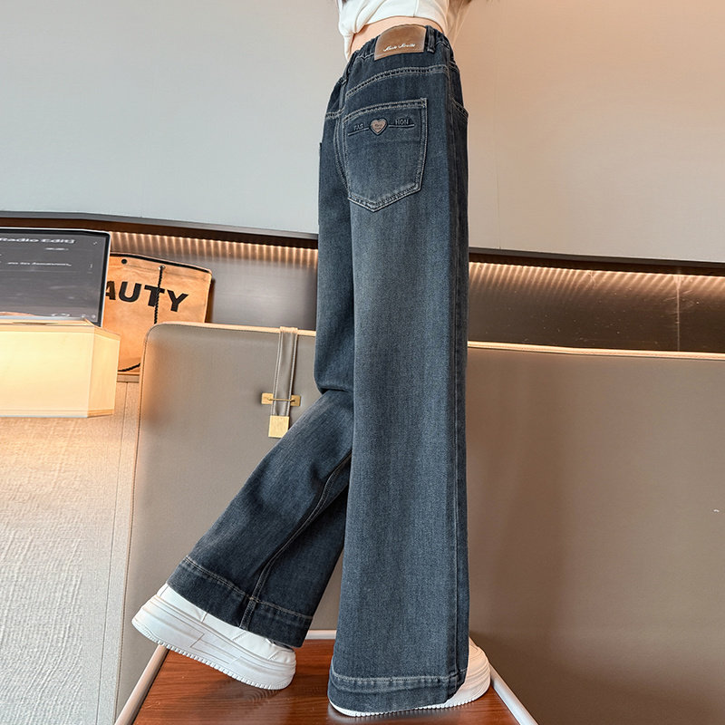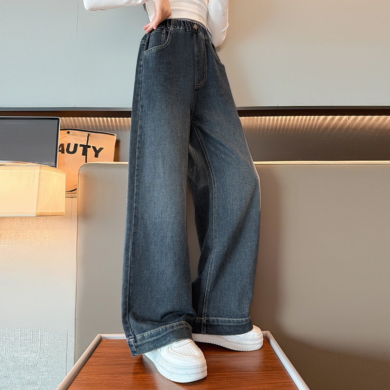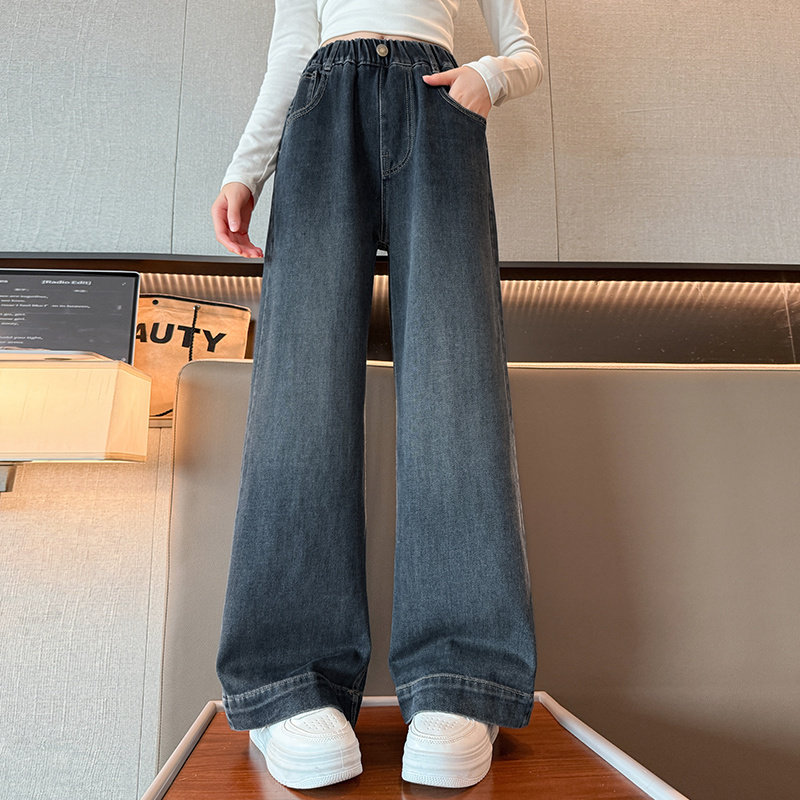 春装女童直筒牛仔裤2026新款儿童大童女孩阔腿春秋长裤初中生裤子