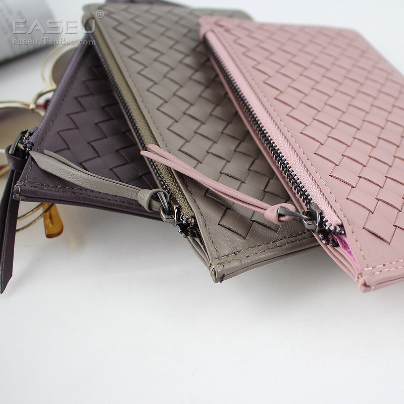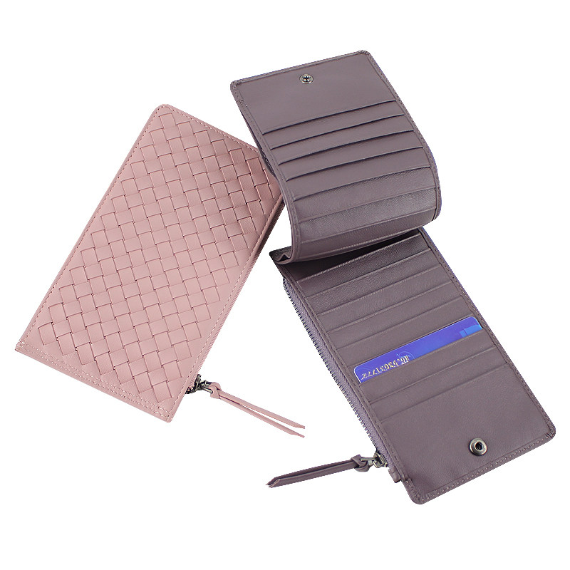 简约时尚女长款软羊皮真皮编织钱包大容量多卡位卡包男女同款钱夹