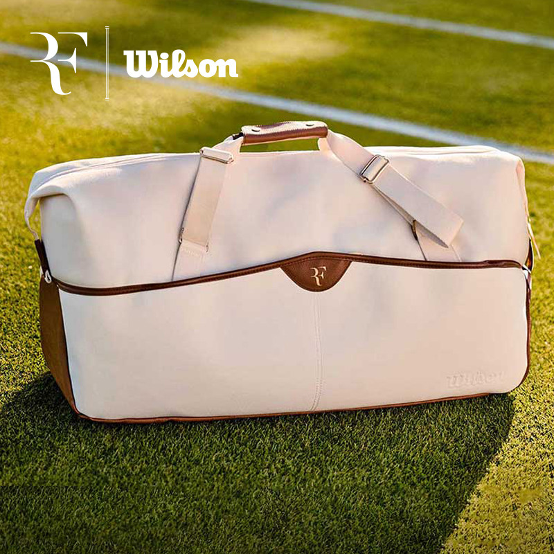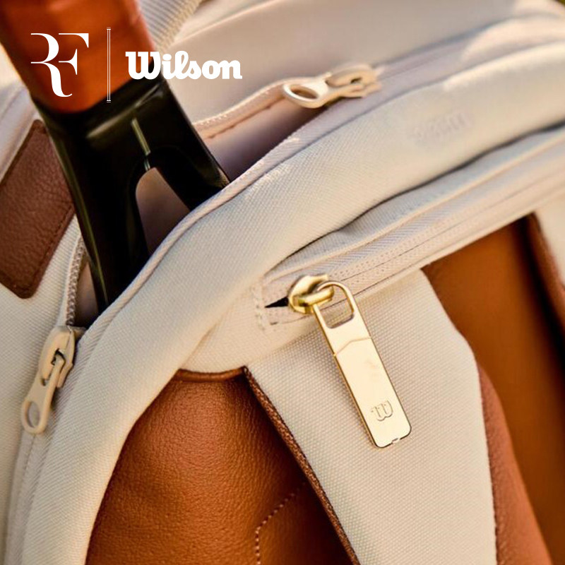 Wilson网球包25新款RF双肩包大容量运动背包米白色帆布专业网球包