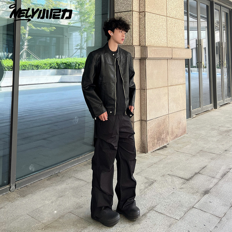 小尼力黑色美式直筒卫裤男生酷帅穿搭青少年秋季裤子阔腿裤长裤bf
