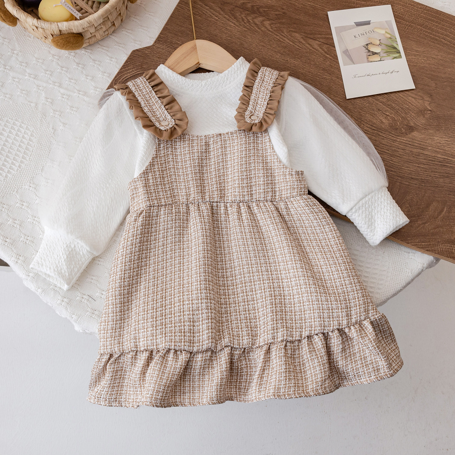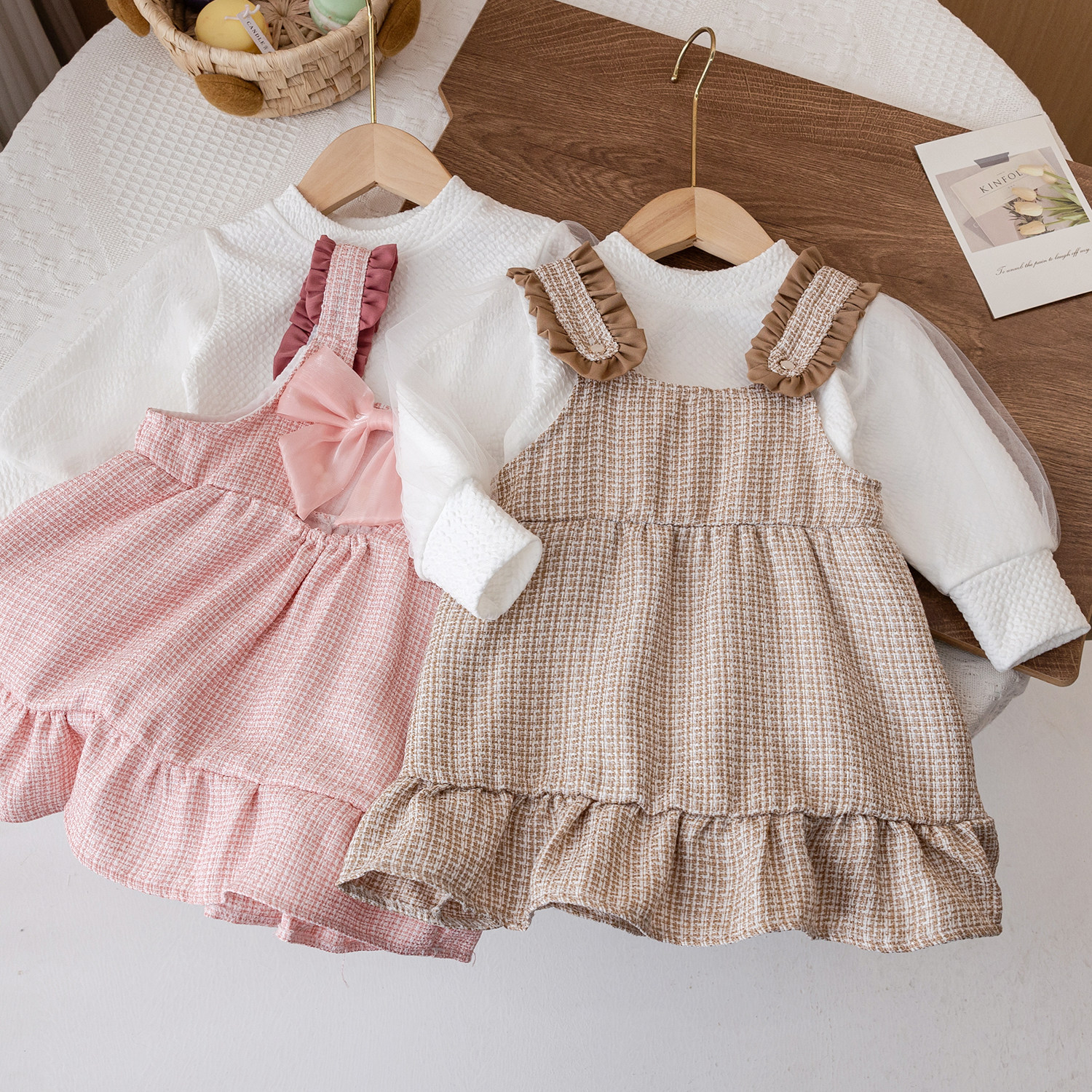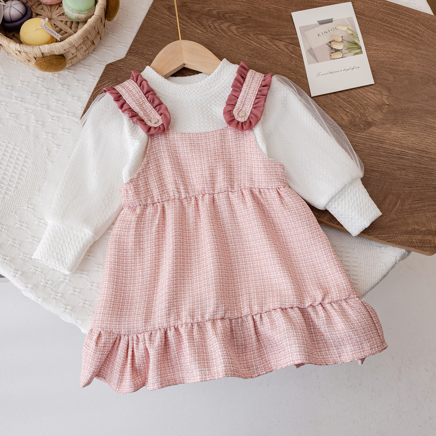 女童圆领长袖宝宝韩版连衣裙2024春秋新款0-7岁洋气娃娃衫两件套t