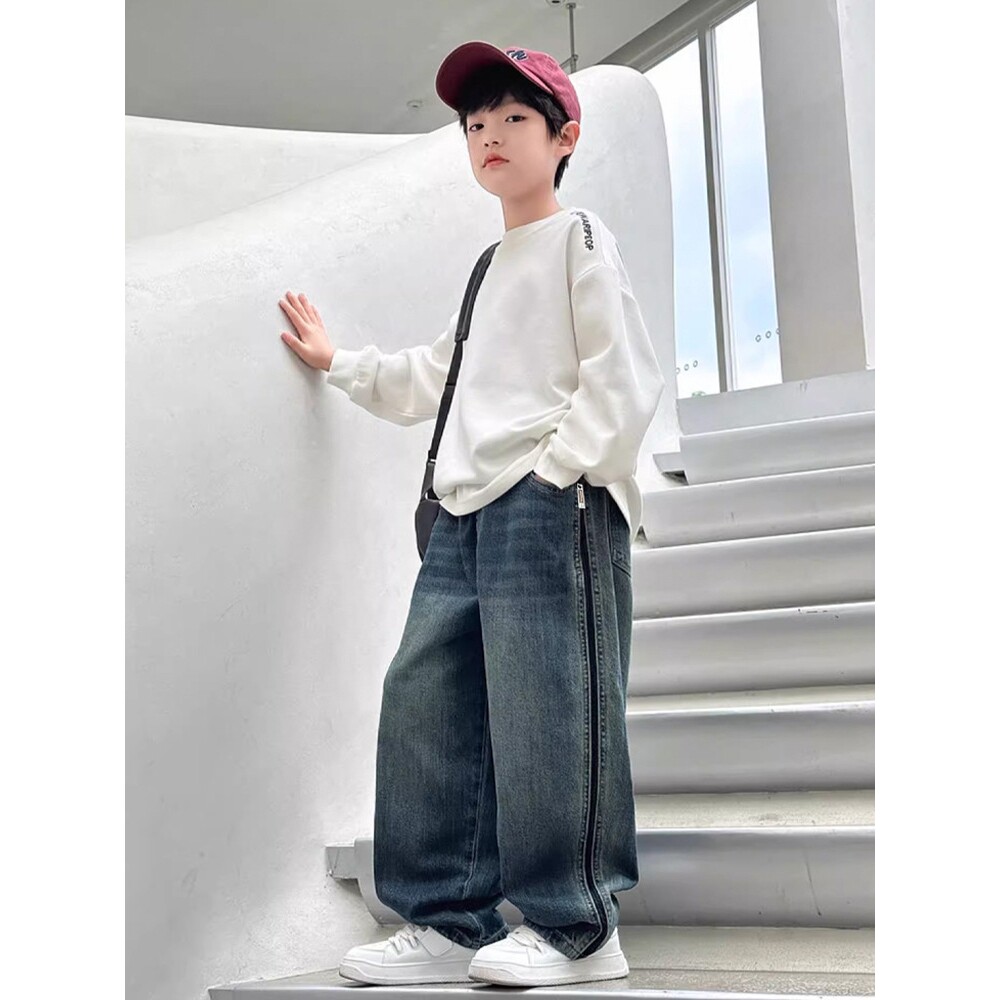男童牛仔裤直筒春秋2026新款儿童帅气男孩童装中大童运动阔腿裤子