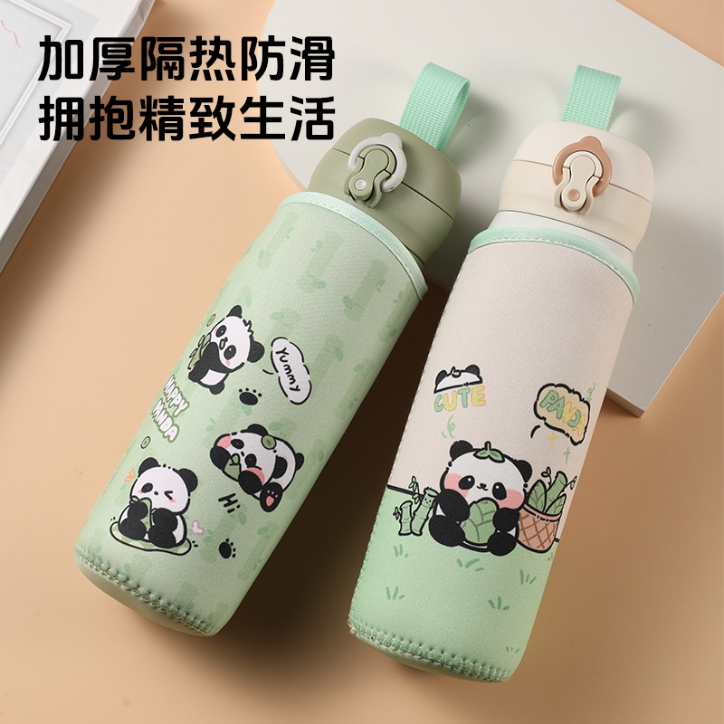 卡通可爱便携式保温杯杯套隔热防摔玻璃杯保护套儿童水杯手提杯套