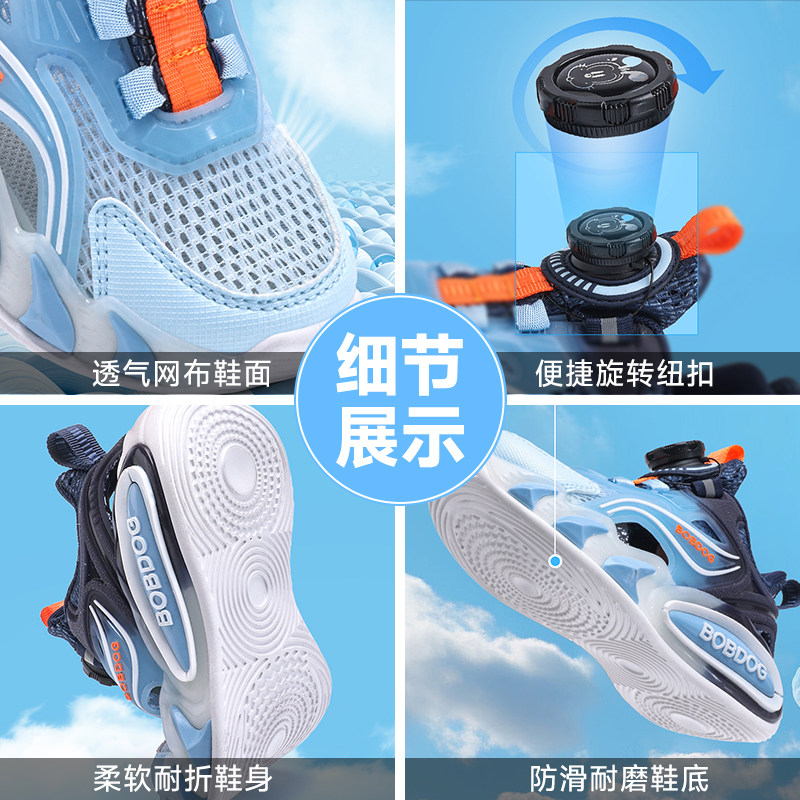 巴布豆童鞋男童运动凉鞋夏季2026新款透气网面轻便大童男孩框子鞋
