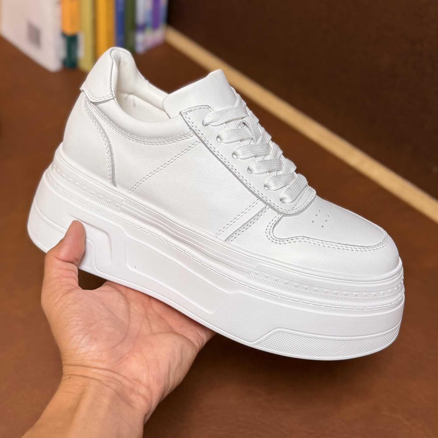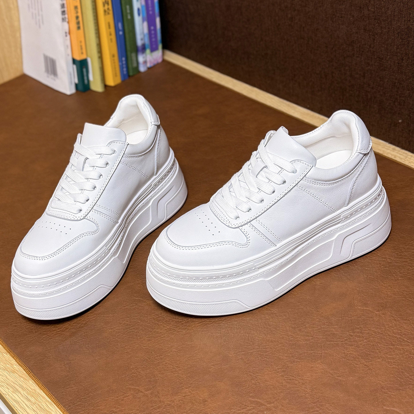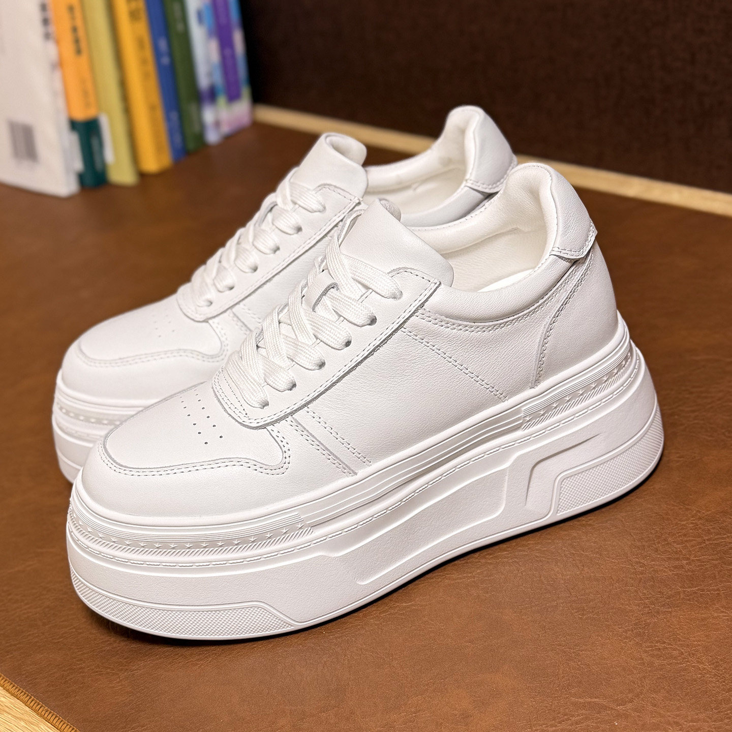 轻便松糕厚底内增高8-10cm女款2026新款春款真皮显脚小个子小白鞋
