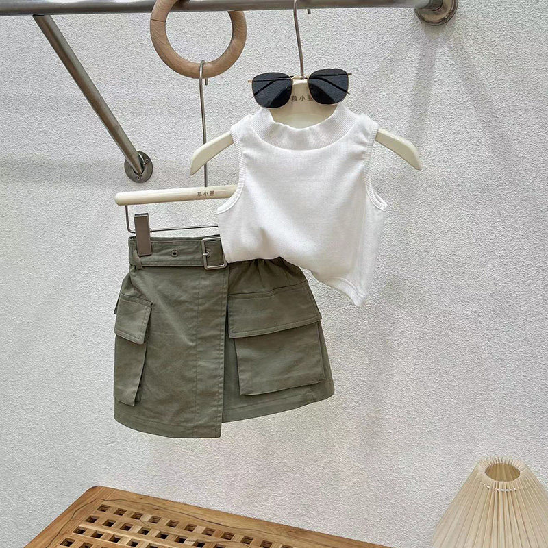 女童洋气套装裙夏季2026新款儿童裙子中大童夏装工装裙短裙两件套