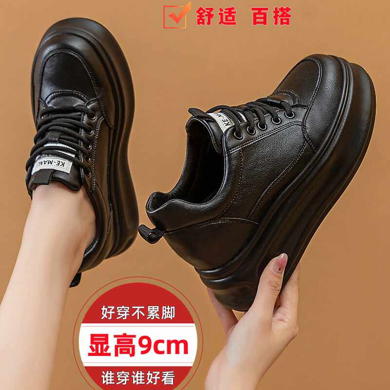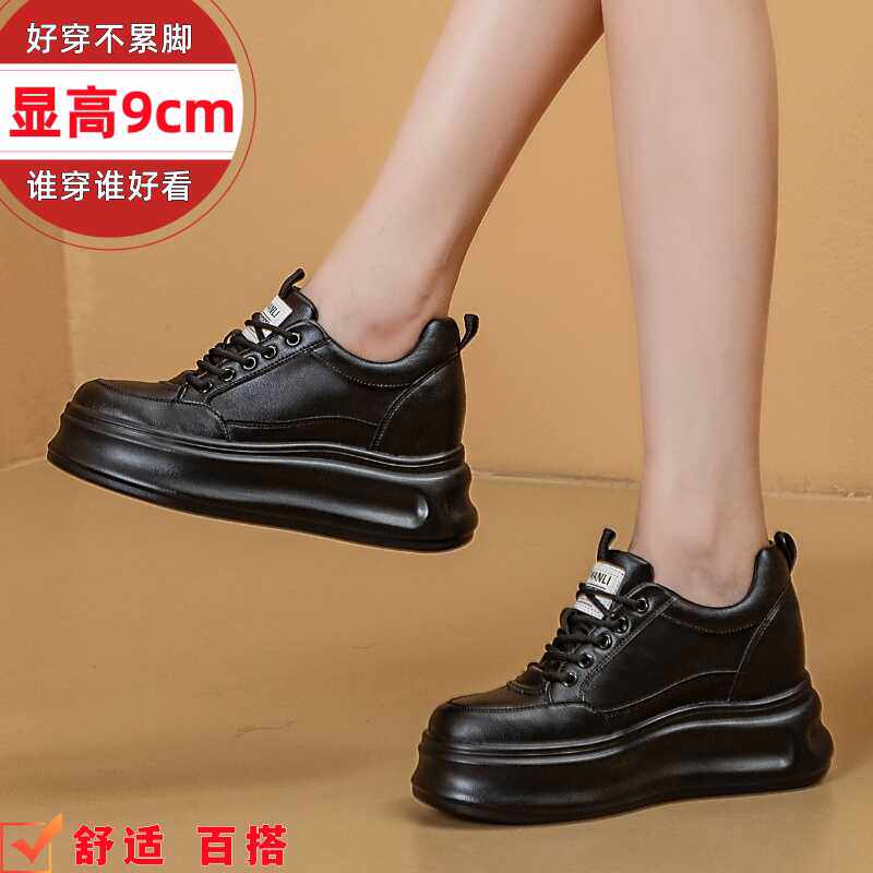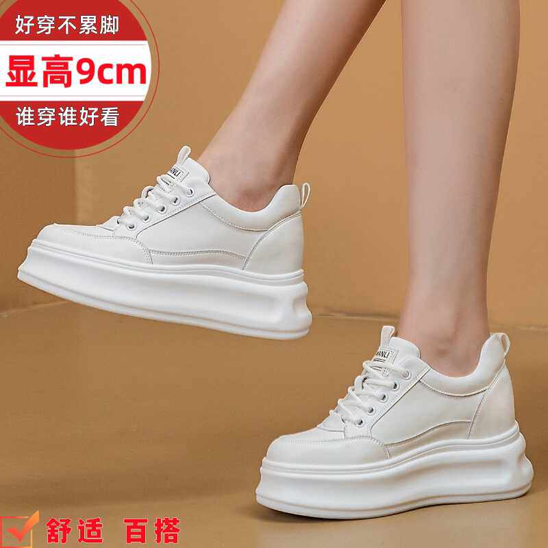 爆款内增高小白鞋女厚底2025春夏季新款真皮舒适百搭小个子休闲鞋