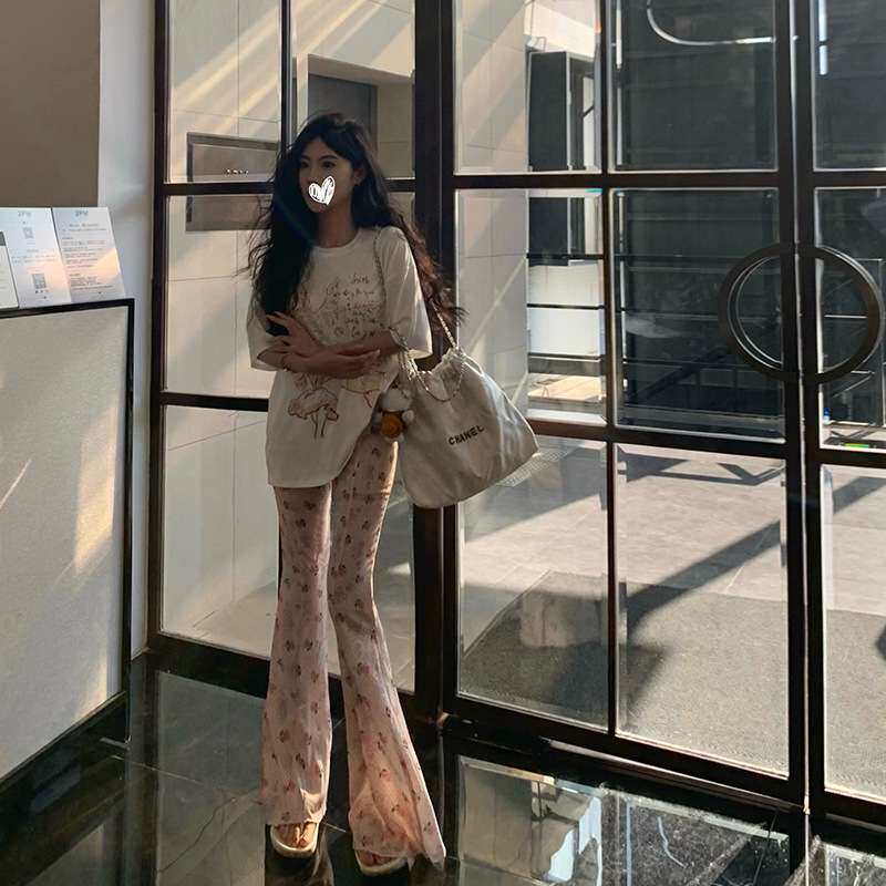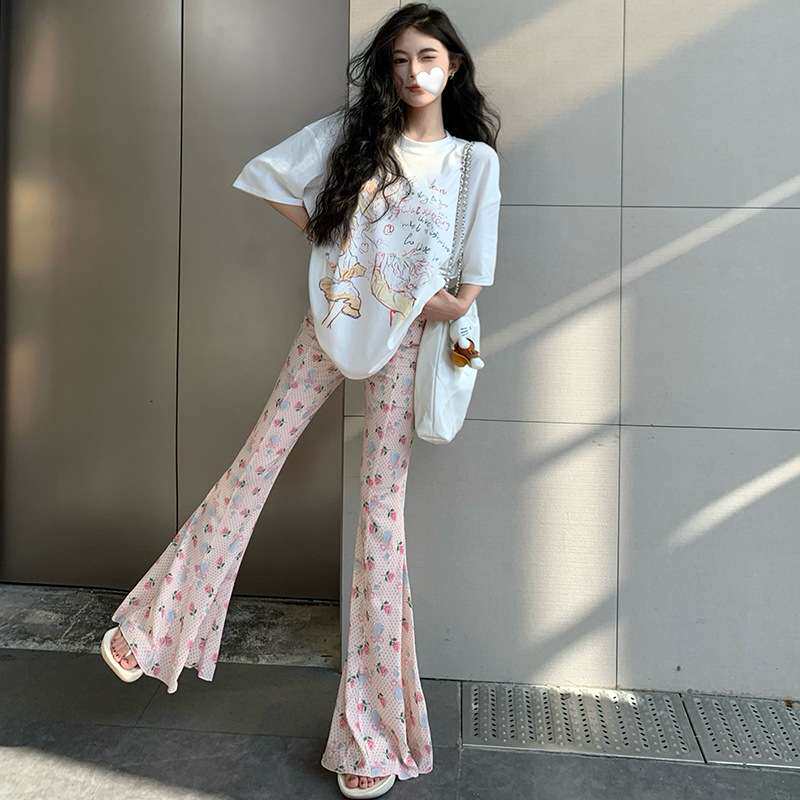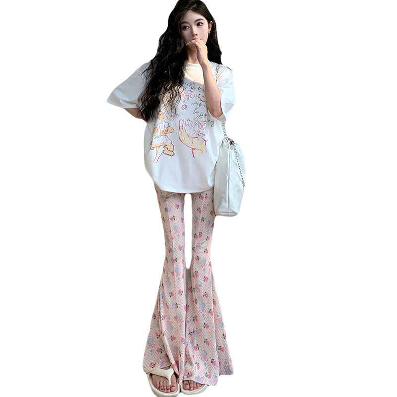 休闲显瘦遮肉海边碎花季夏天套装女款搭配一整套短袖阔腿裤子两件