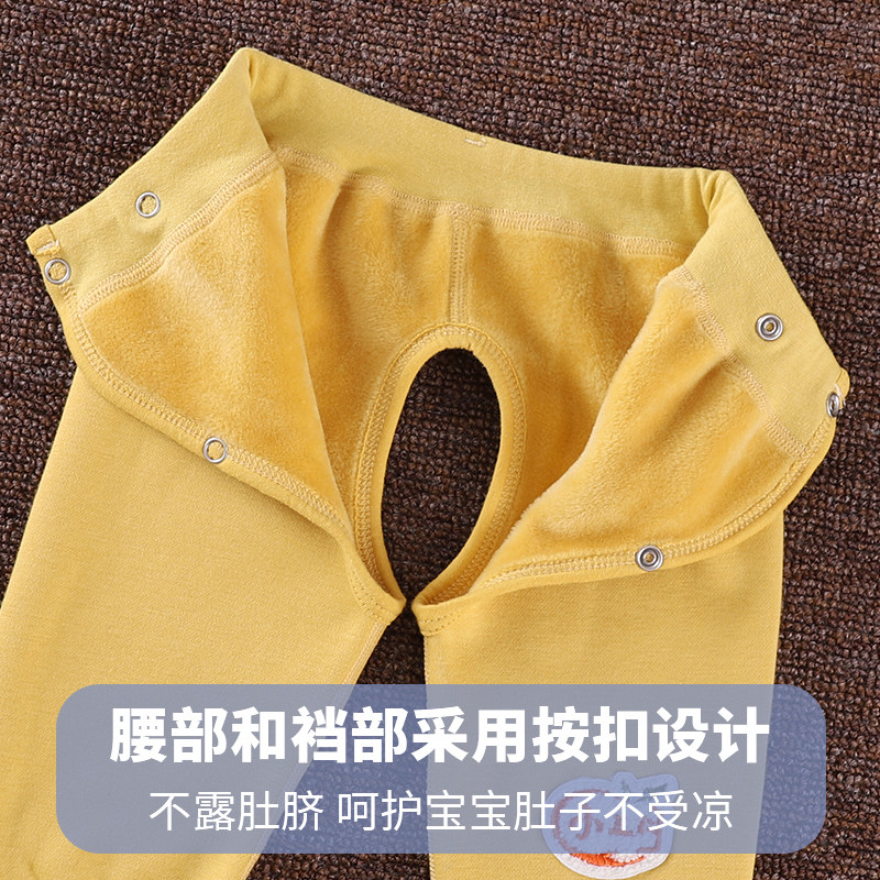 初生婴幼儿加绒保暖裤开裆加厚秋季外穿新生男女宝宝冬天打底裤子