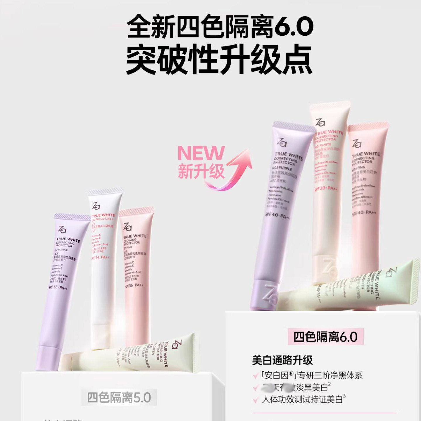 ZA姬芮新焕真皙美白隔离6.0防晒霜妆前乳打底女遮瑕提亮正品旗舰